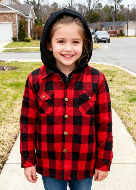 Kids Boys and Girls Fleece-Lined Snap Flannel Shirt,Hooded Plaid Jacket