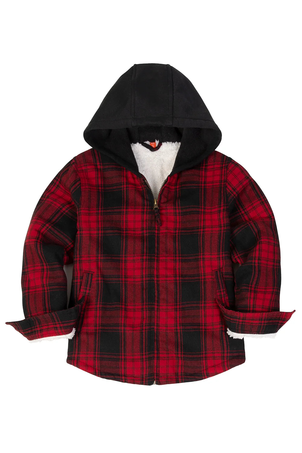 Toddler Boys and Girls Sherpa-Lined Full Zip Hooded Plaid Flannel Shirt