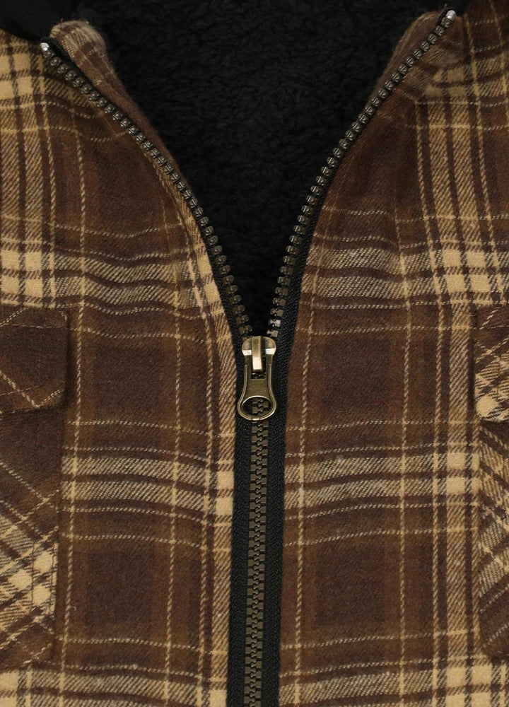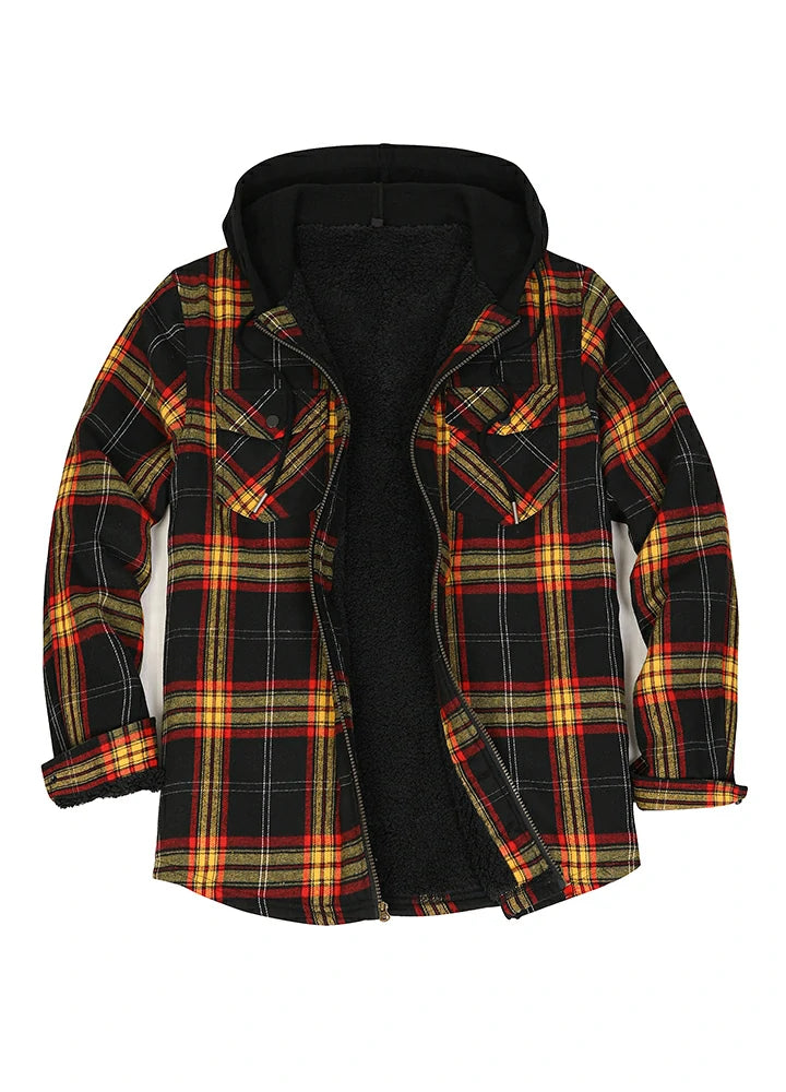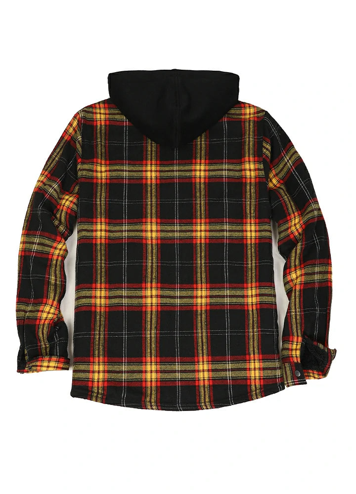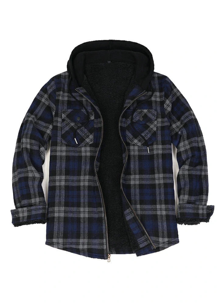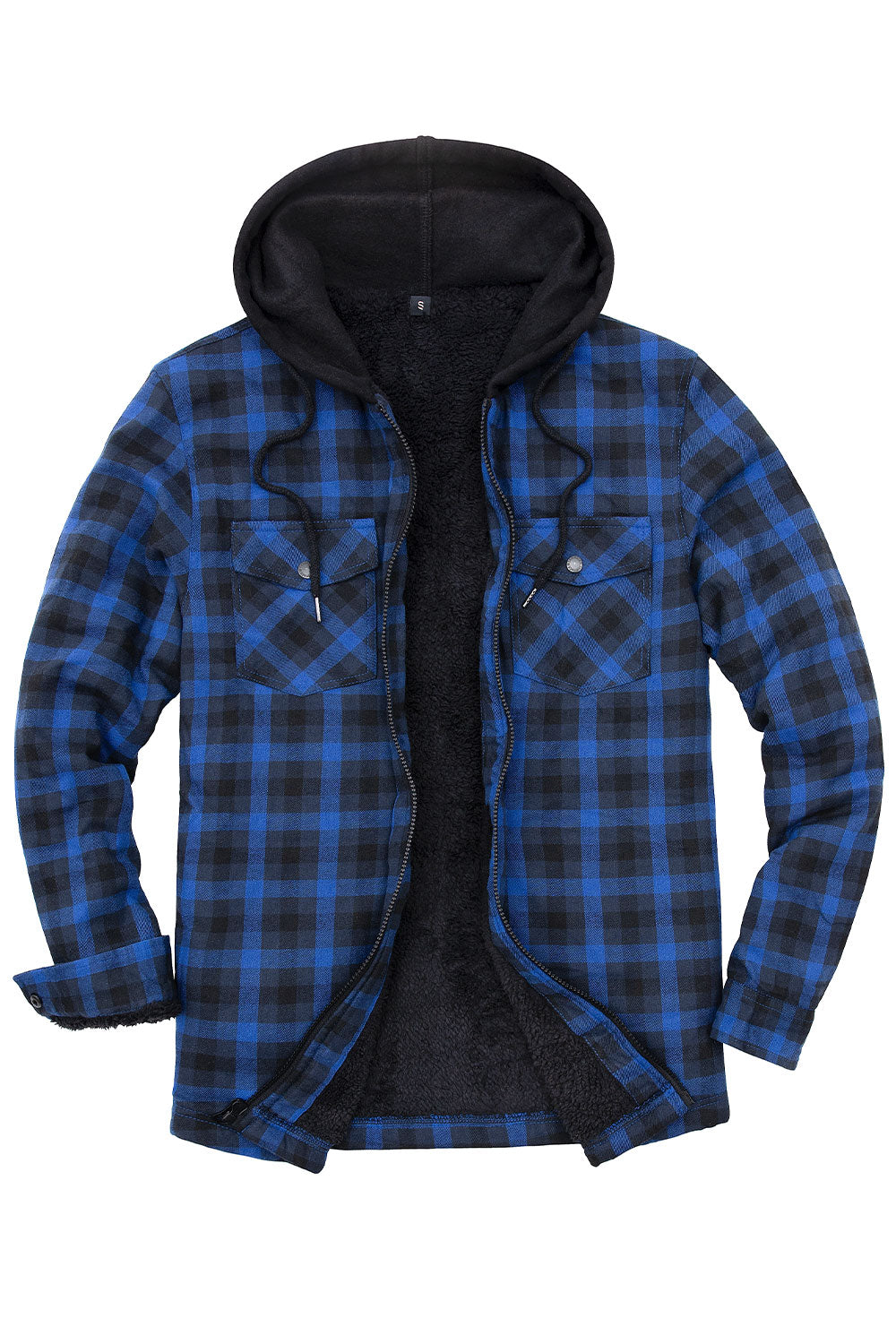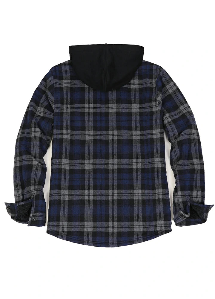 Men's Sherpa Lined Flannel Shirt Jacket with Hood,Plaid Shirt-Jac