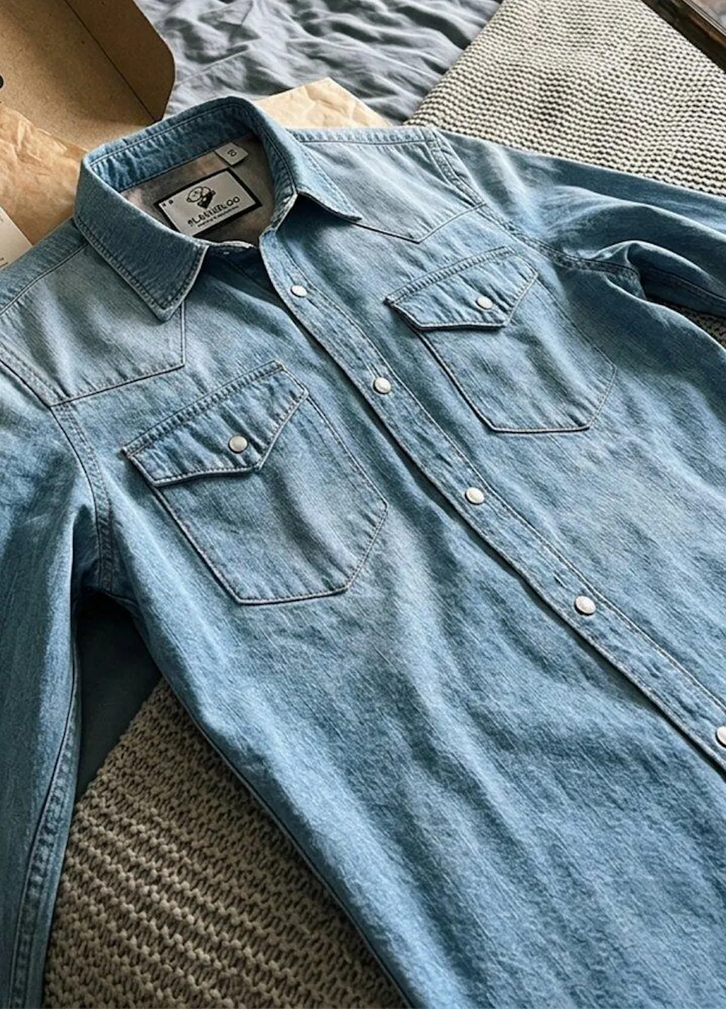 Men's Retro Pearl Snap Denim Western Shirt - Blue / S is backordered and will ship as soon as it is back in stock.