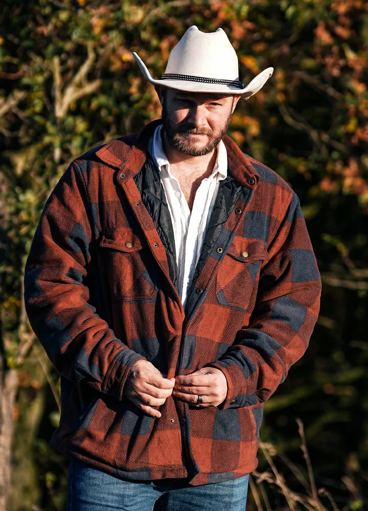 Men's Quilted Lined Snap Button Shirt Jacket - Dark Rust Red / S is backordered and will ship as soon as it is back in stock.