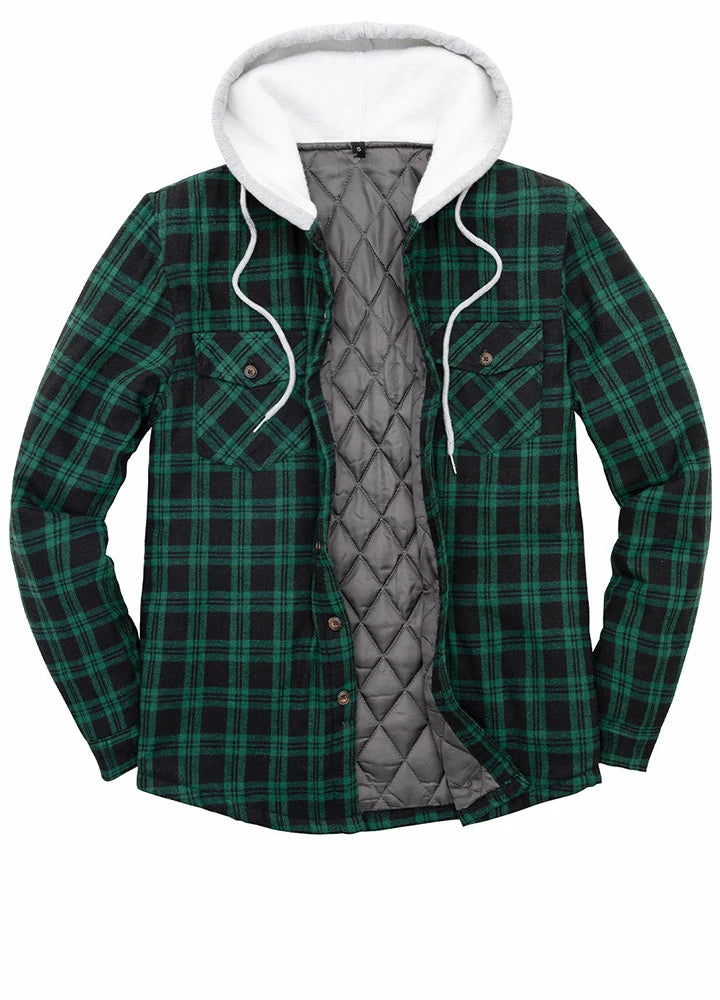 Men's Matching Family Quilted Lined Green Plaid Hoodie