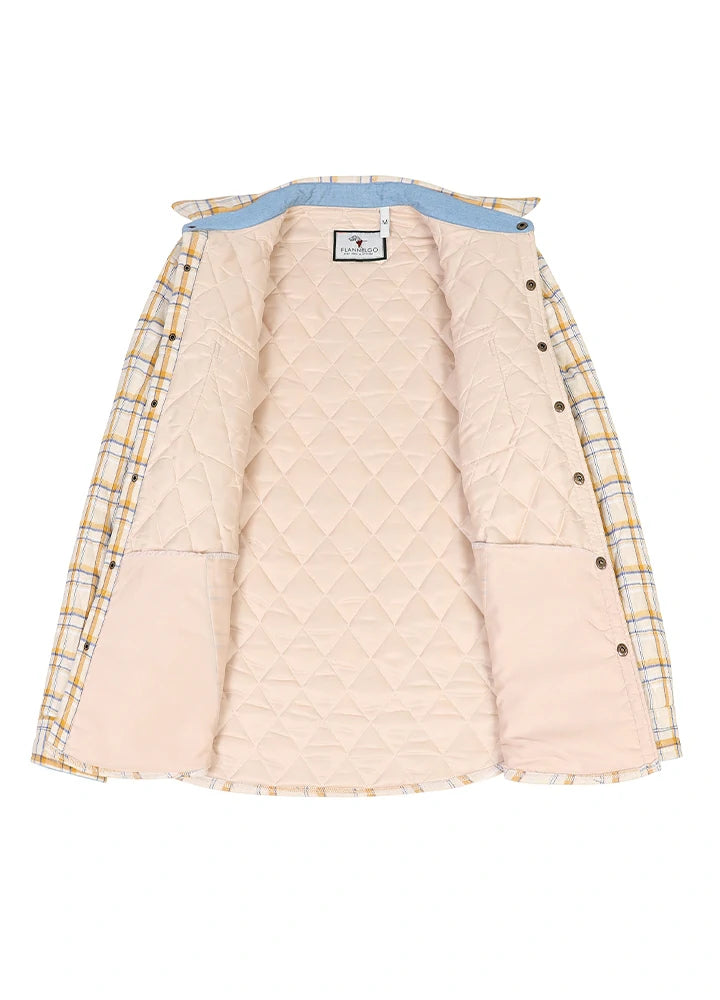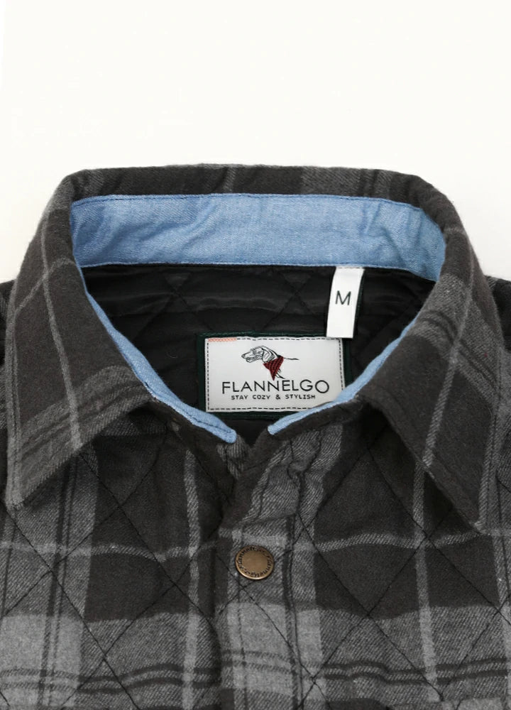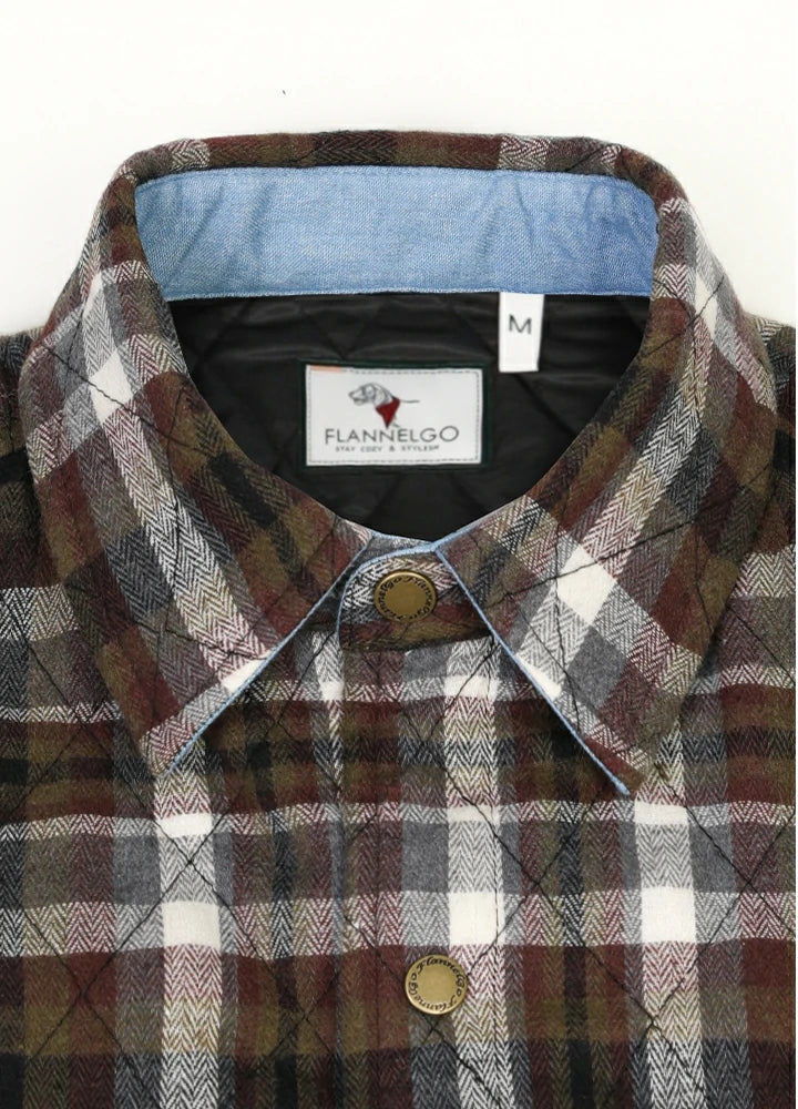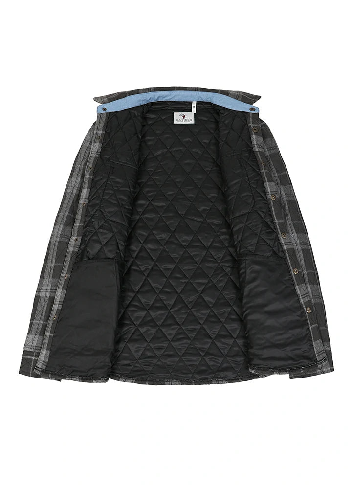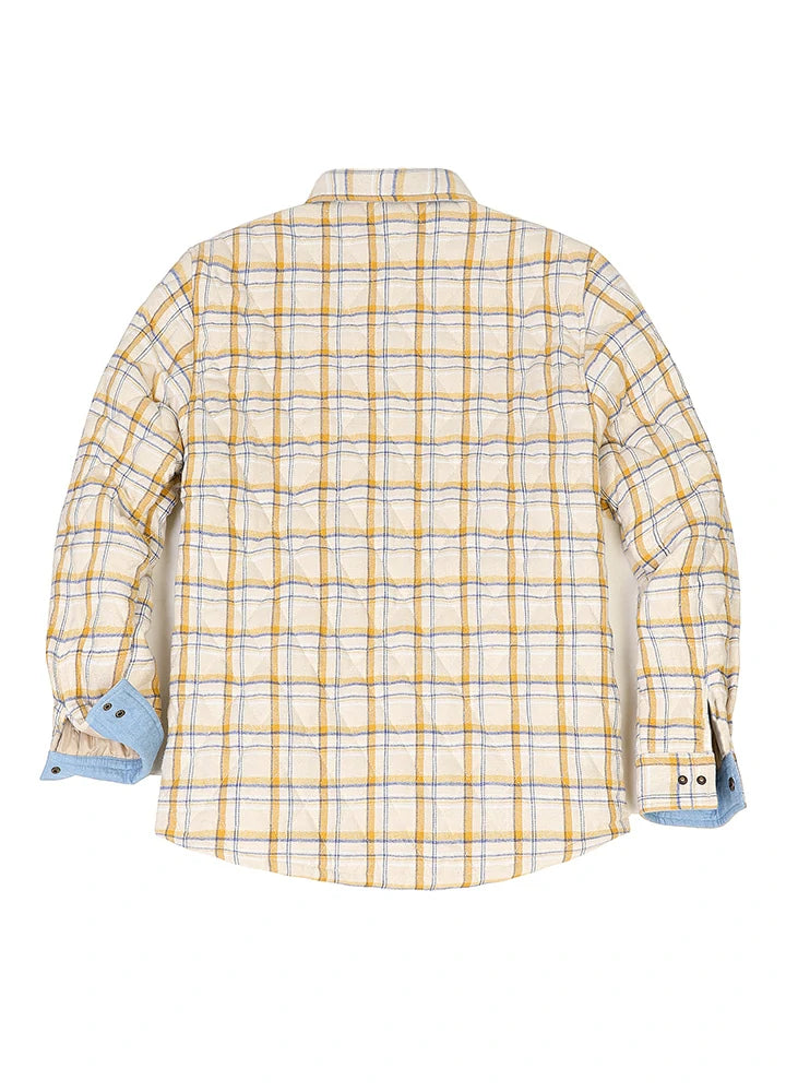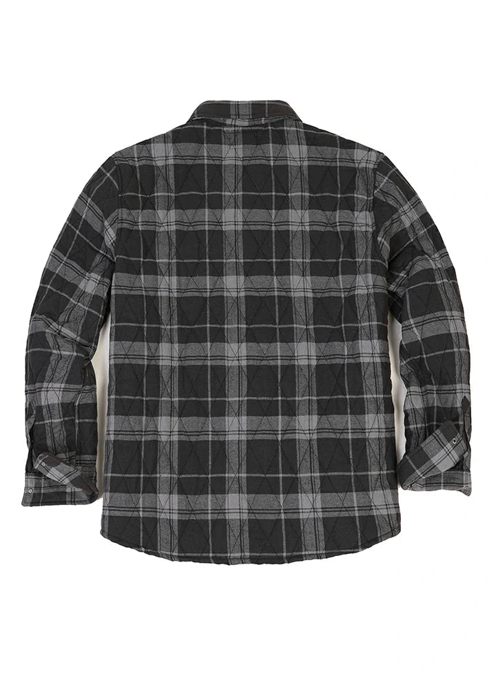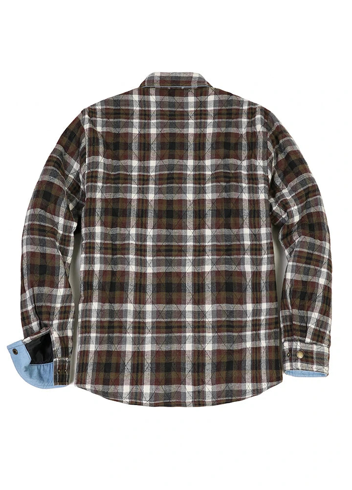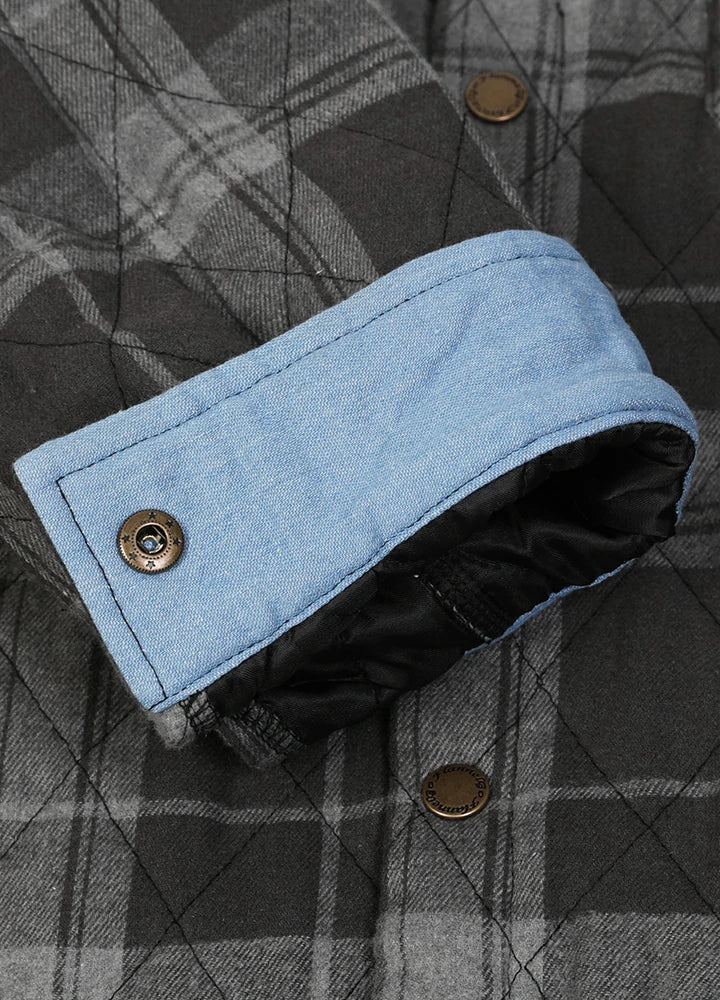 Men's Quilt Lined Plaid Jacket,Snap Button Shacket