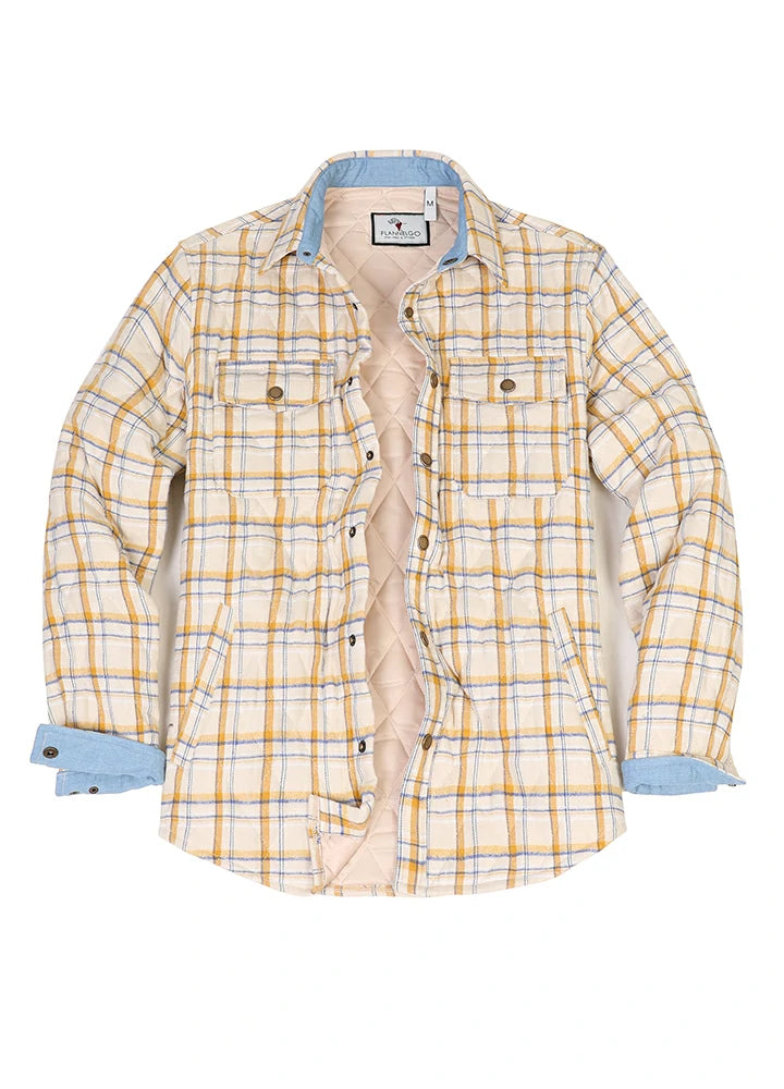 Men's Quilt Lined Plaid Jacket,Snap Button Shacket - Khaki / M is backordered and will ship as soon as it is back in stock.