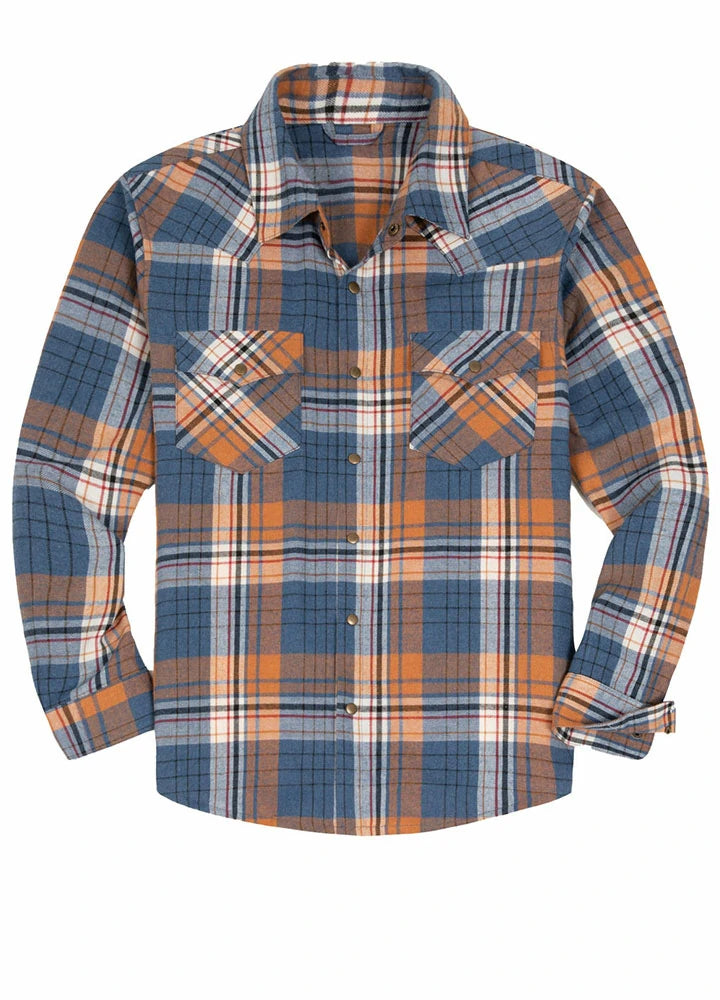 Men's Snap Front Long Sleeve Plaid Western Flannel Shirt