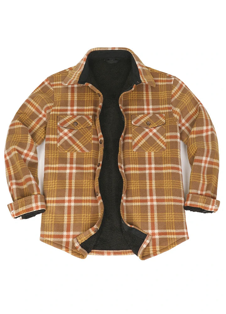 Stay warm and comfortable with polyester fleece and sherpa-bonded lining. This rugged shacket features chest flaps, side pockets, and buttoned cuffs for a classic look. Perfect for layering over a tee or sweater in cooler weather—great for home, work, or any outdoor activity. A perfect blend of performance and style, and an ideal holiday gift!