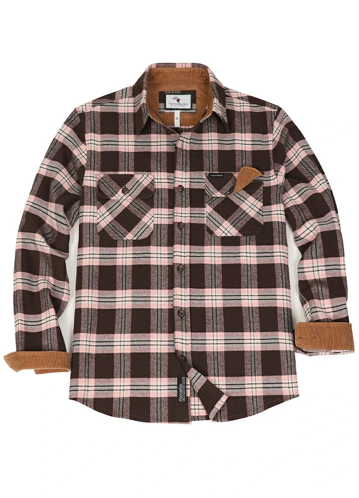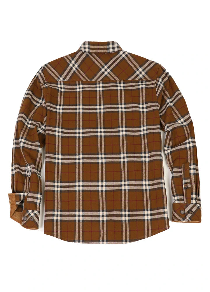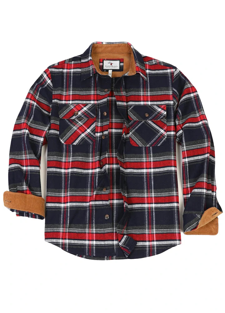 Men's Timberline Midweight Plaid Flannel Shirt,100% Cotton, Long Sleeve Button Up.8 Oz fabric. The corduroy trim inside the collar and around the cuffs make these shirts comfortable and classic! Wrap yourself in comfort and style with our Men's Midweight Flannel Shirt! Made with 100% cotton, this long-sleeved button-up is perfect for any occasion.
