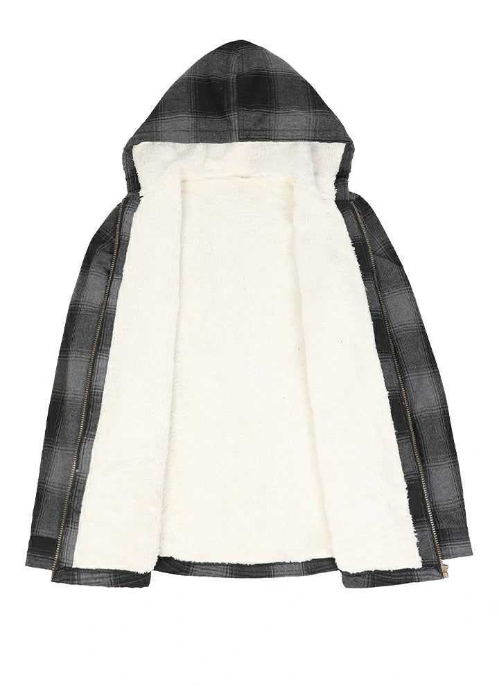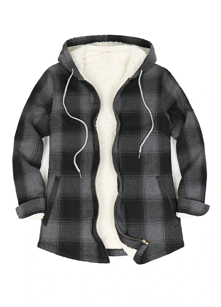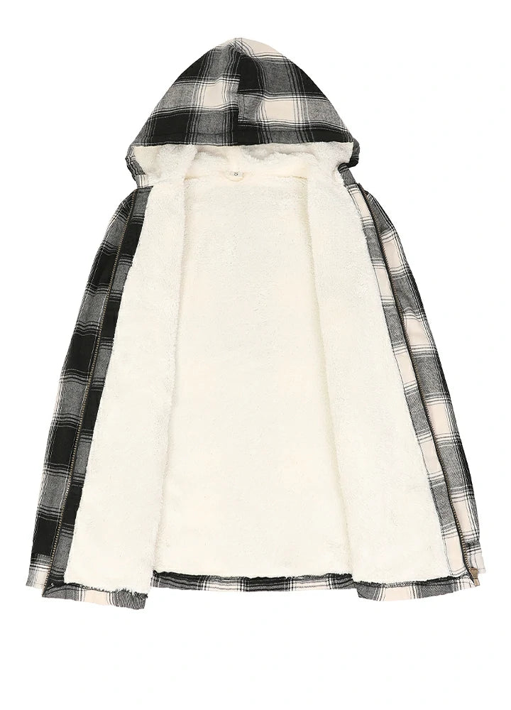 Women's Sherpa-Lined Flannel Jacket Full Zip Up Hooded Plaid Shirt