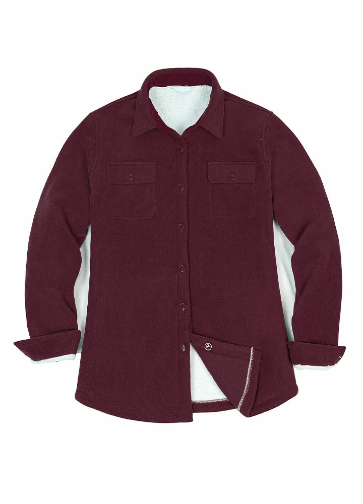 Women's Sherpa Lined Warm Shirt Jacket Button Up Winter Fleece Shirt