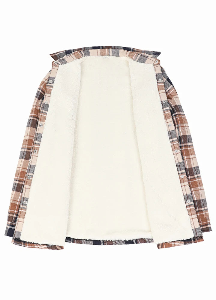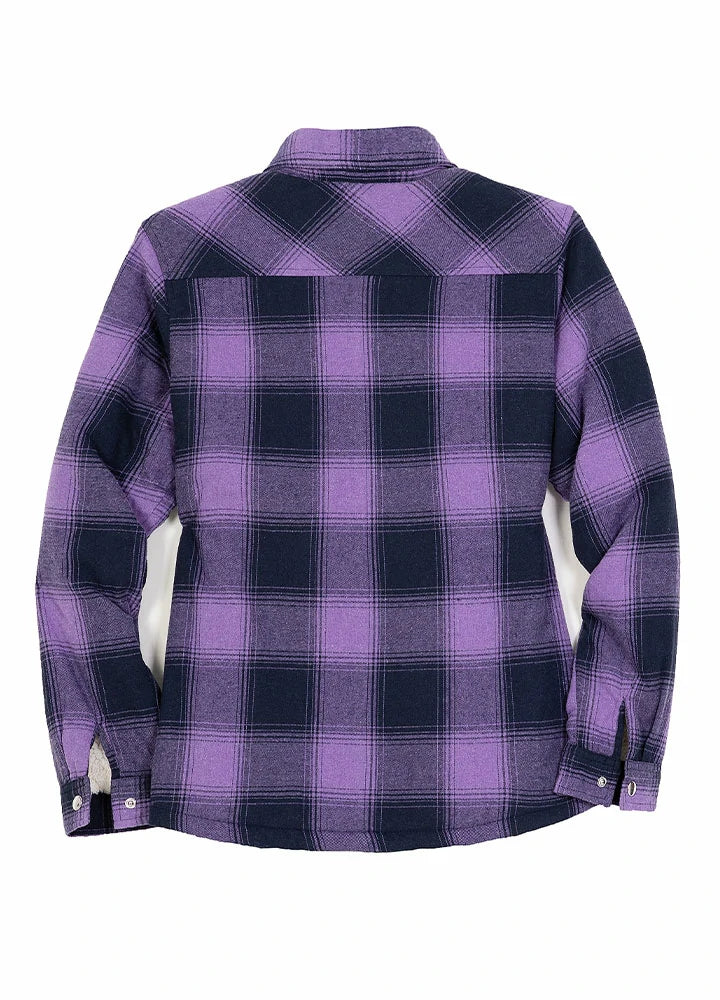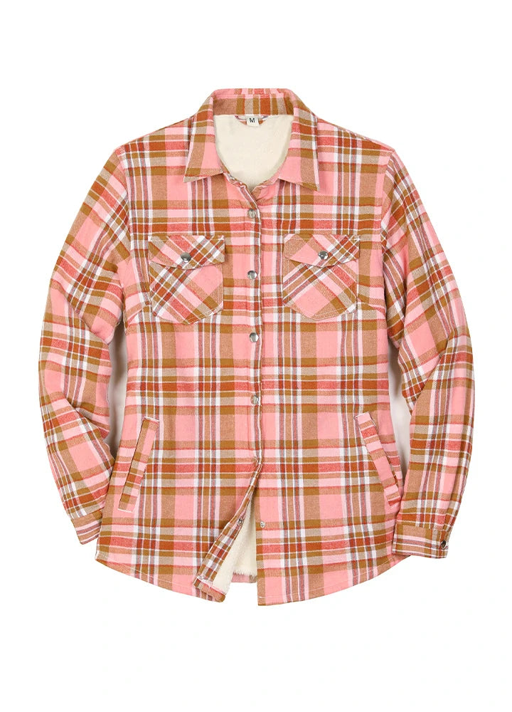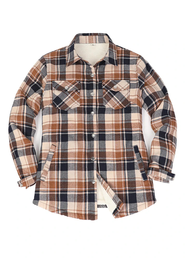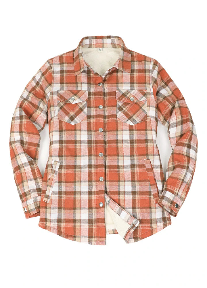 Womens Snap Plaid Flannel Jacket, Sherpa-Lined Shacket