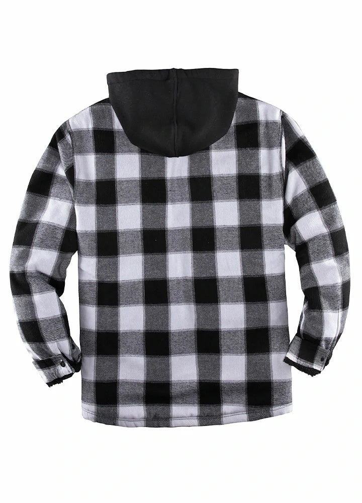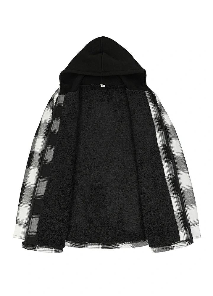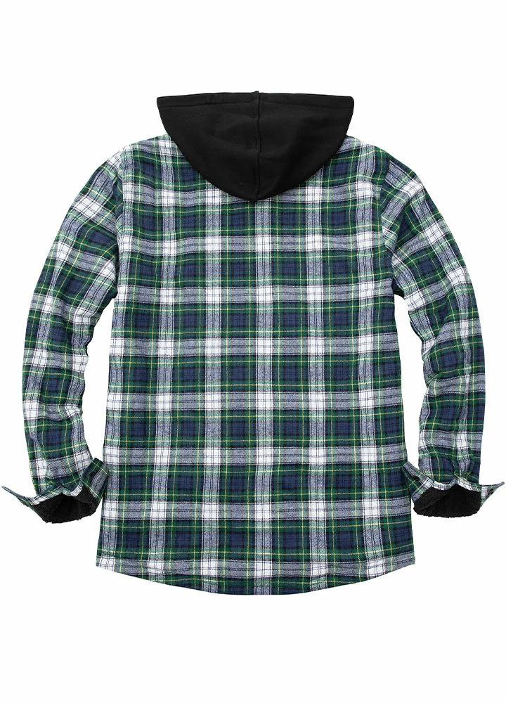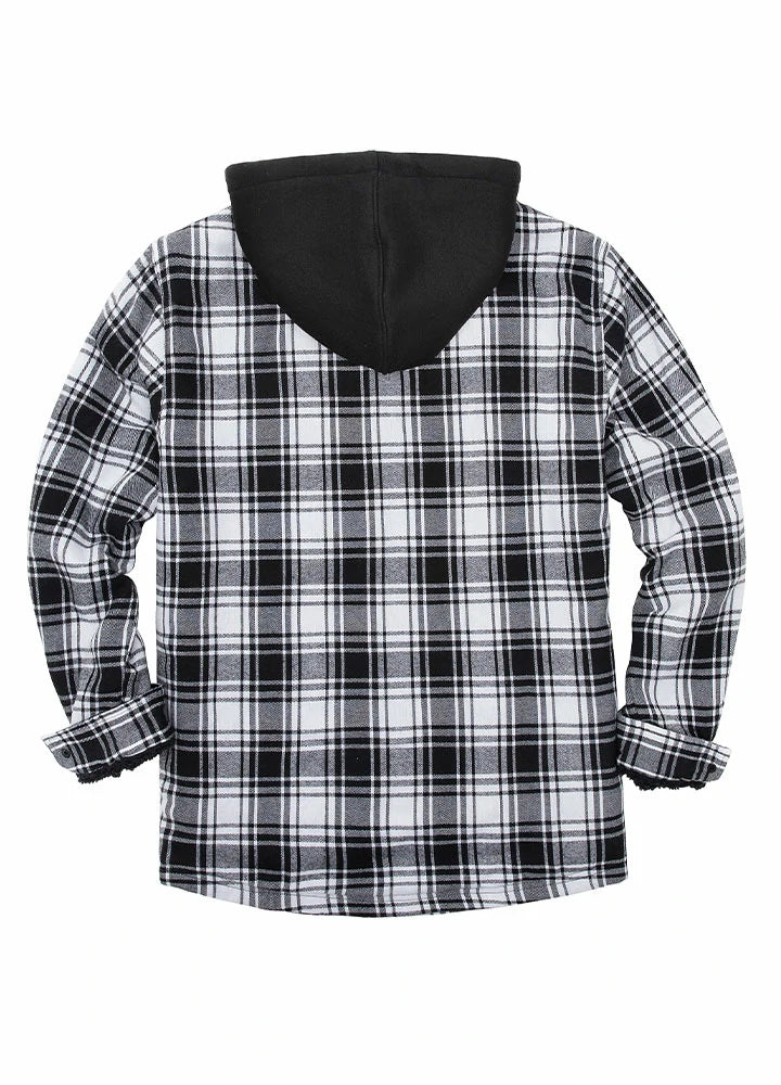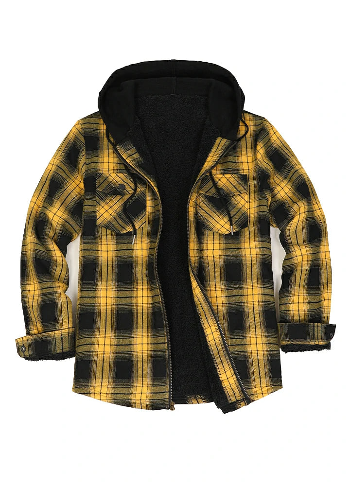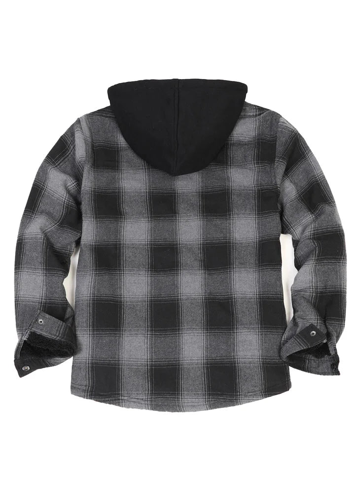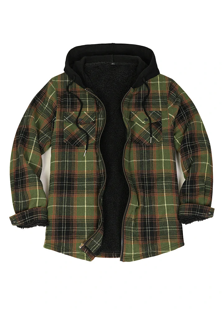 Men's Sherpa Lined Full Zip Up Flannel Plaid Hooded Jacket