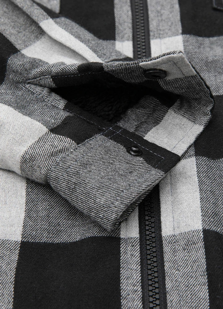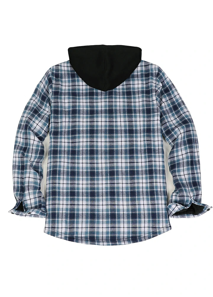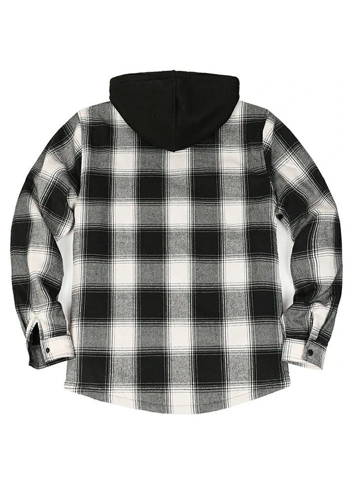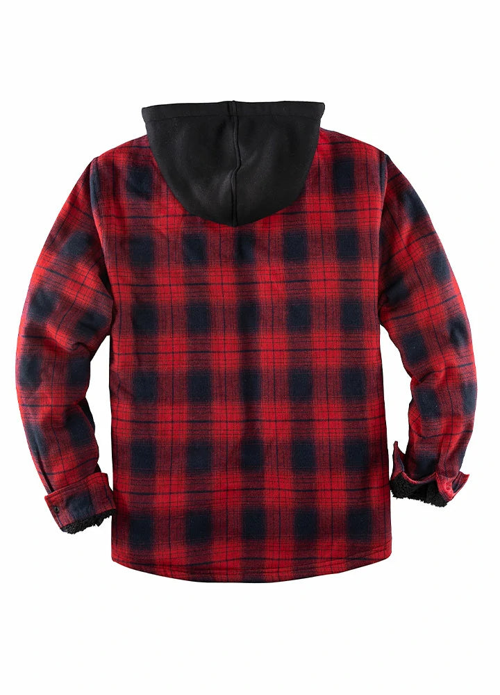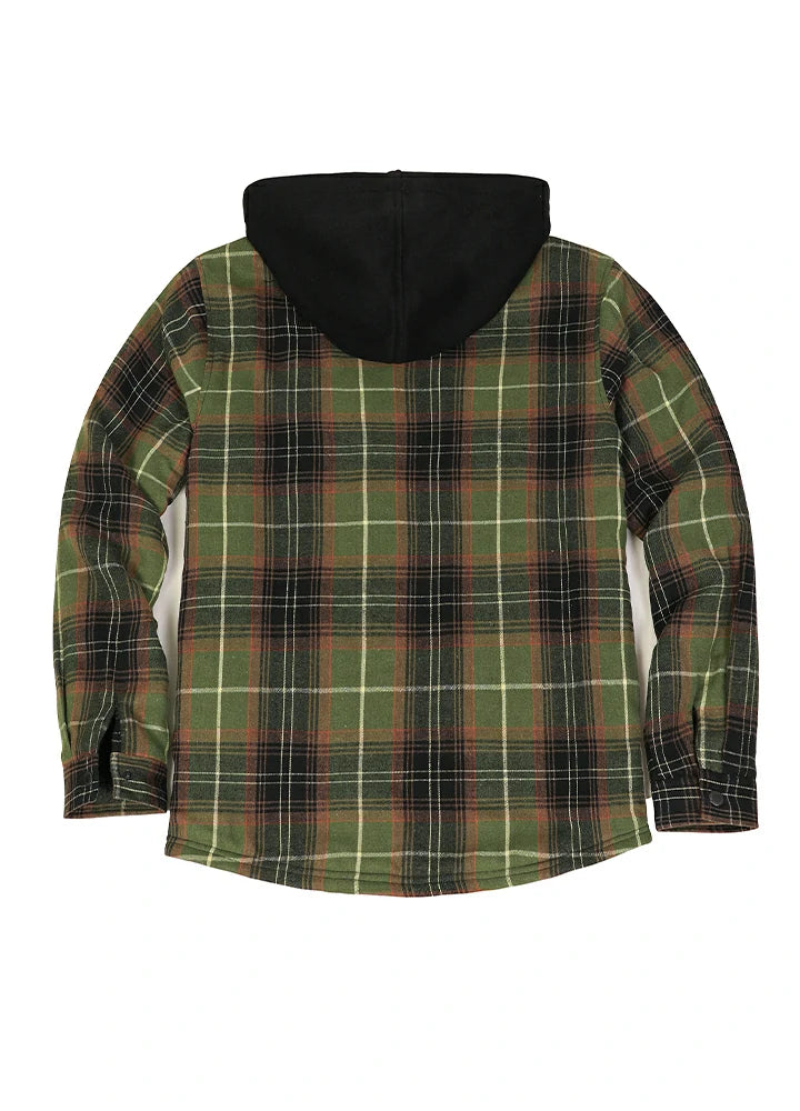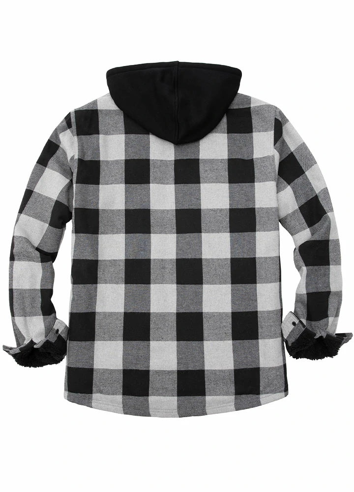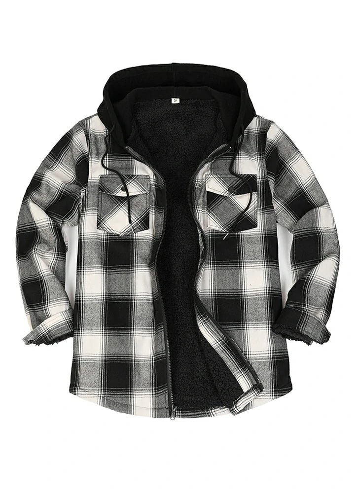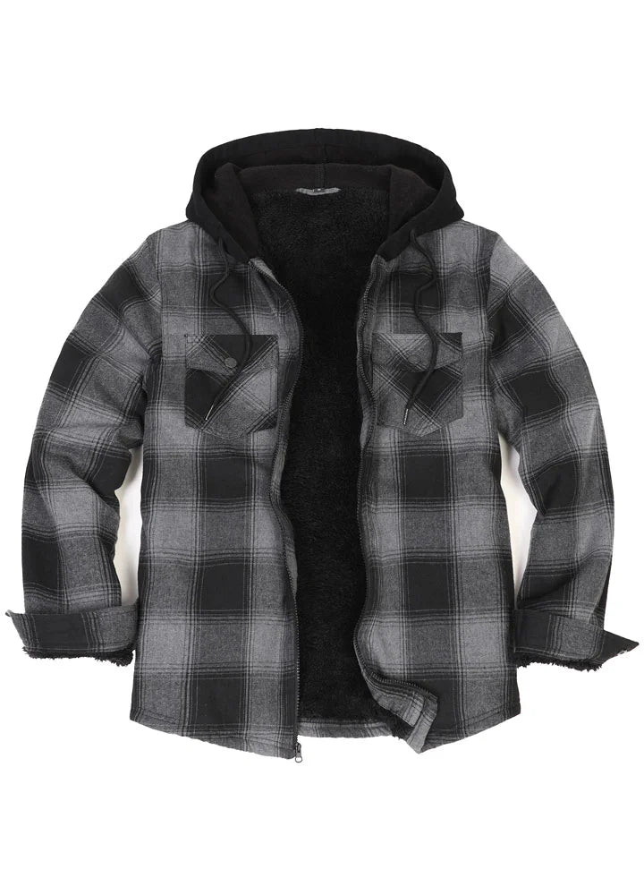 Men's Sherpa Lined Full Zip Up Flannel Plaid Hooded Jacket