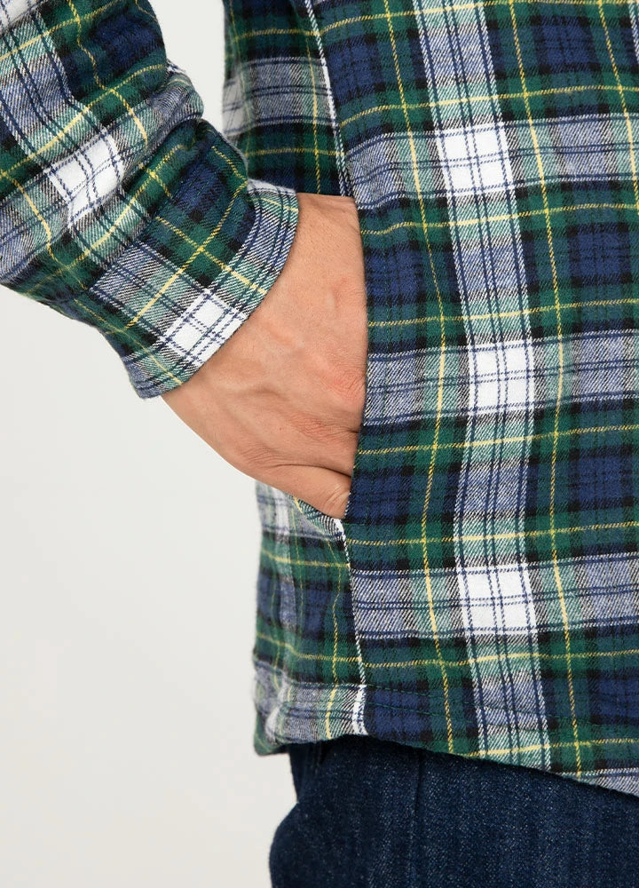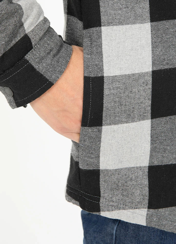 Experience both style and comfort with this men's flannel hoodie jacket! It includes a full-zip front, two chest pockets, and extra side pockets - all the essentials wrapped into one sherpa-lined flannel jacket with a hood.