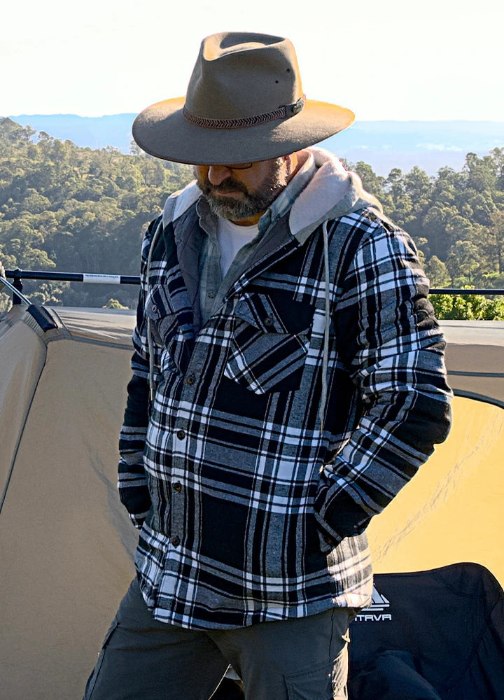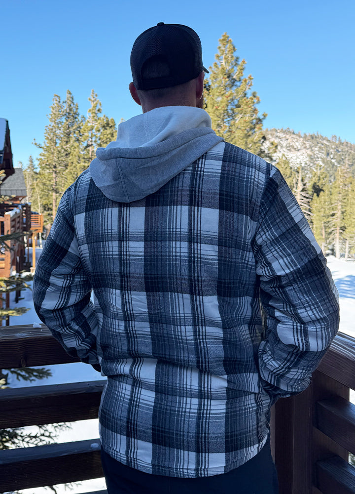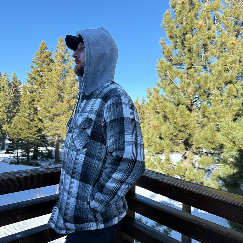 Men's Quilted Lined Button Down Plaid Flannel Shirt Jacket with Hood