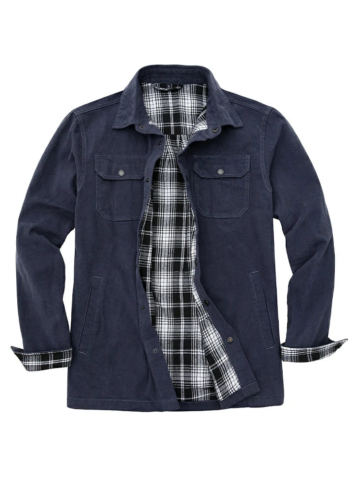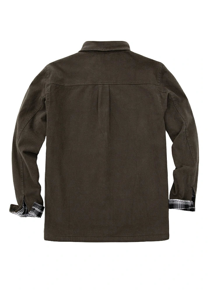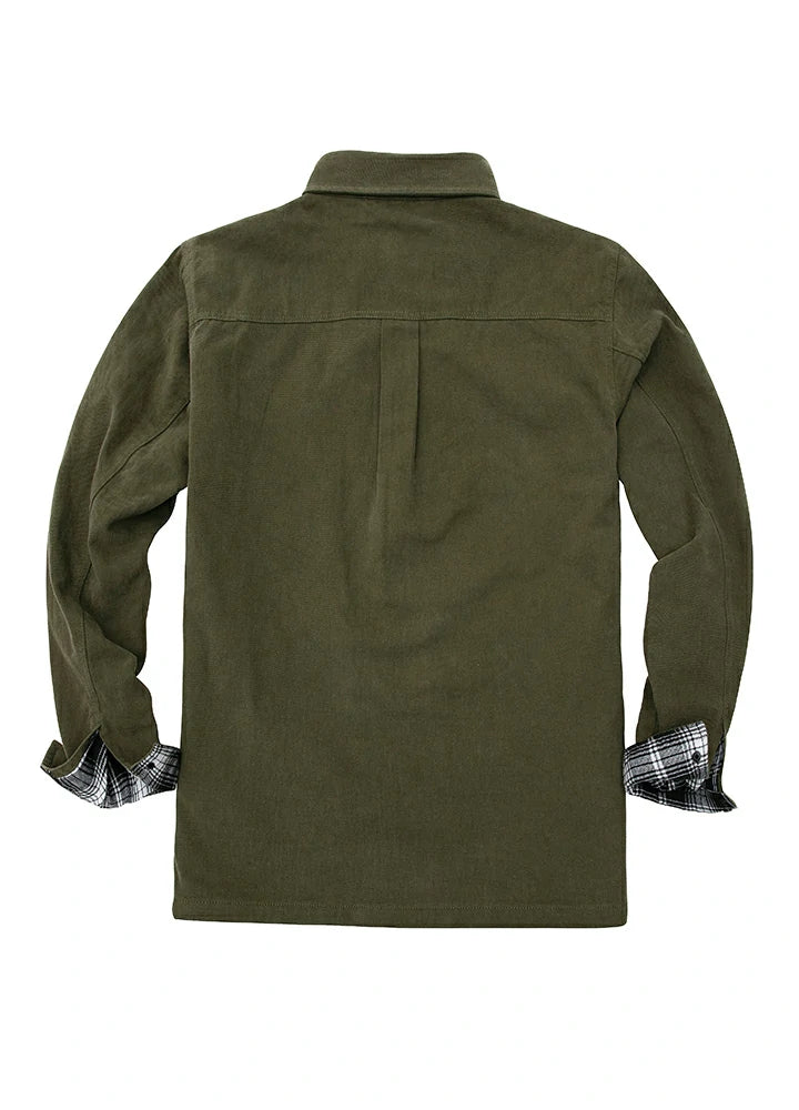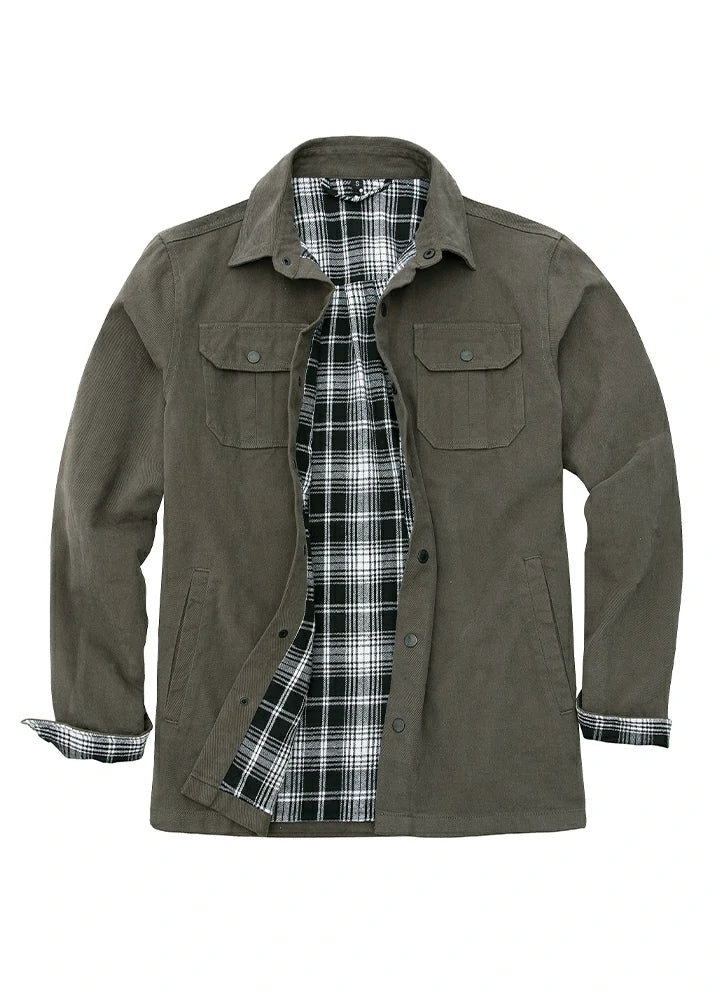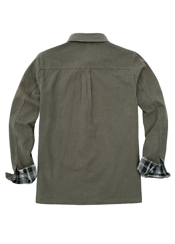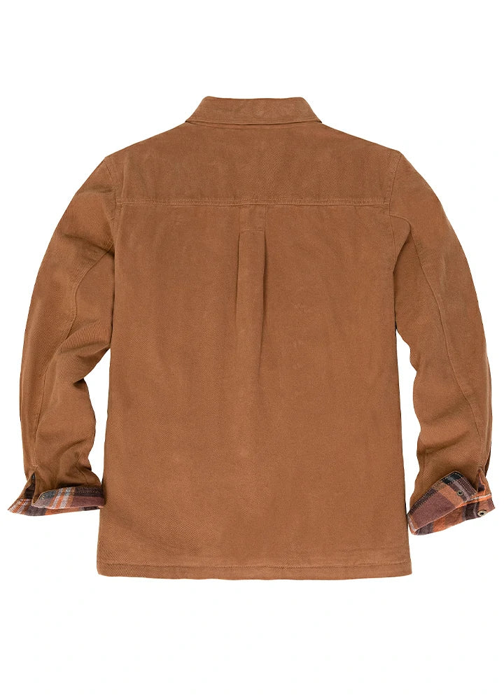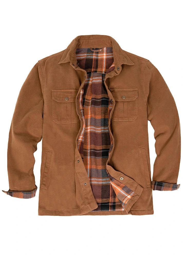 Men's Flannel Lined Heavy Washed Cotton Outdoor Utility Shirt Jacket