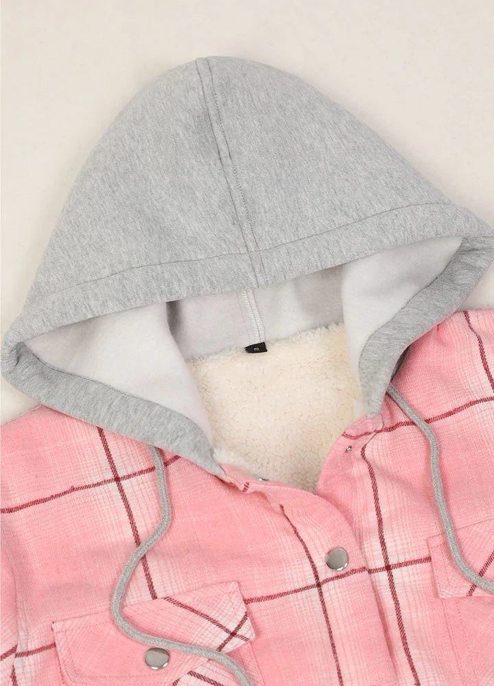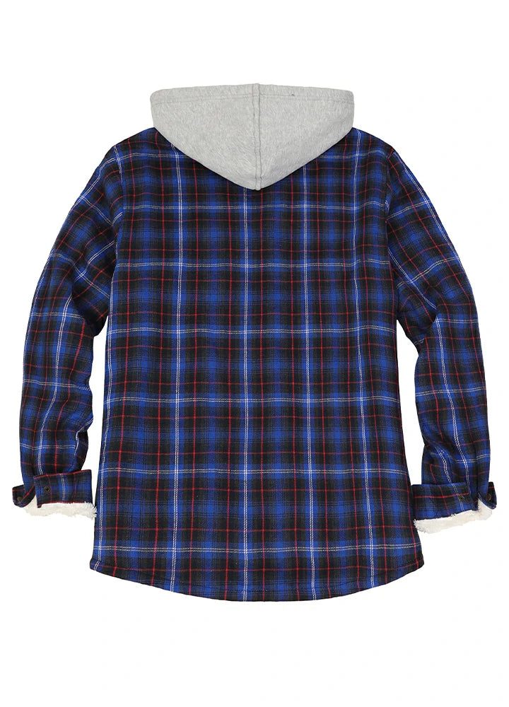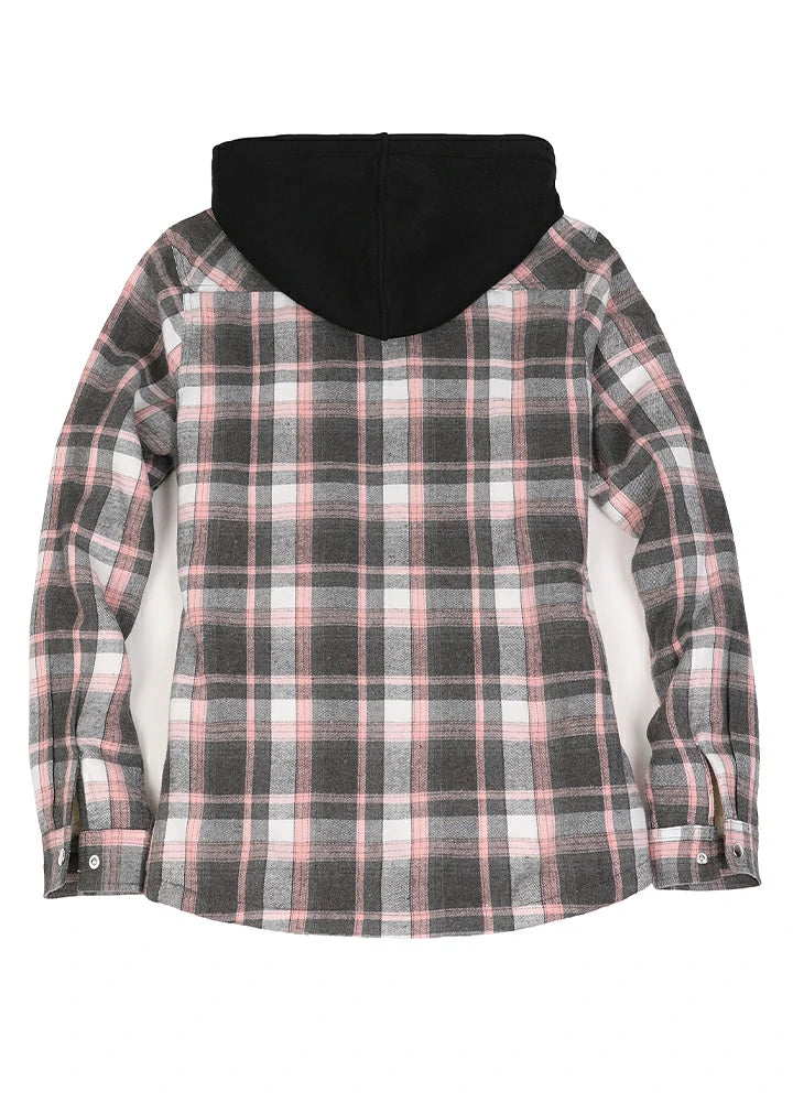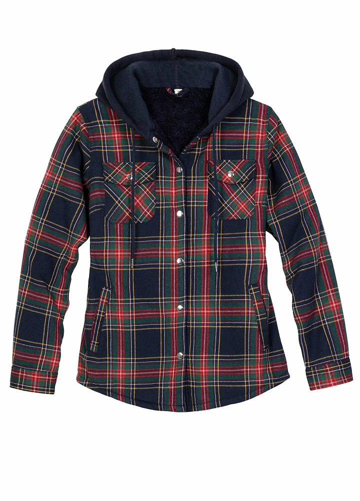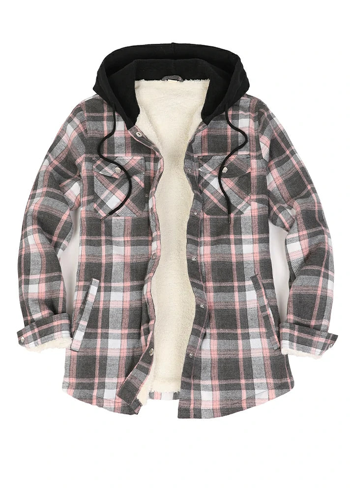 Women's Sherpa-Lined Snap Button Flannel Jacket with Fleece Hood