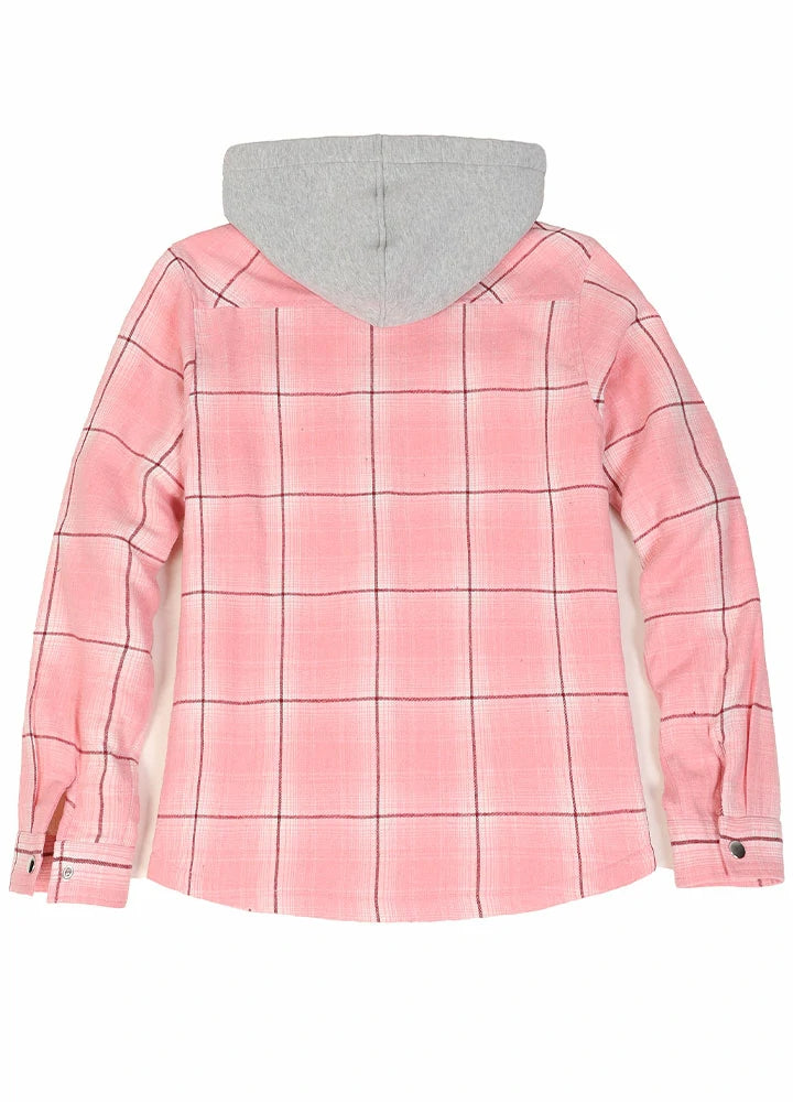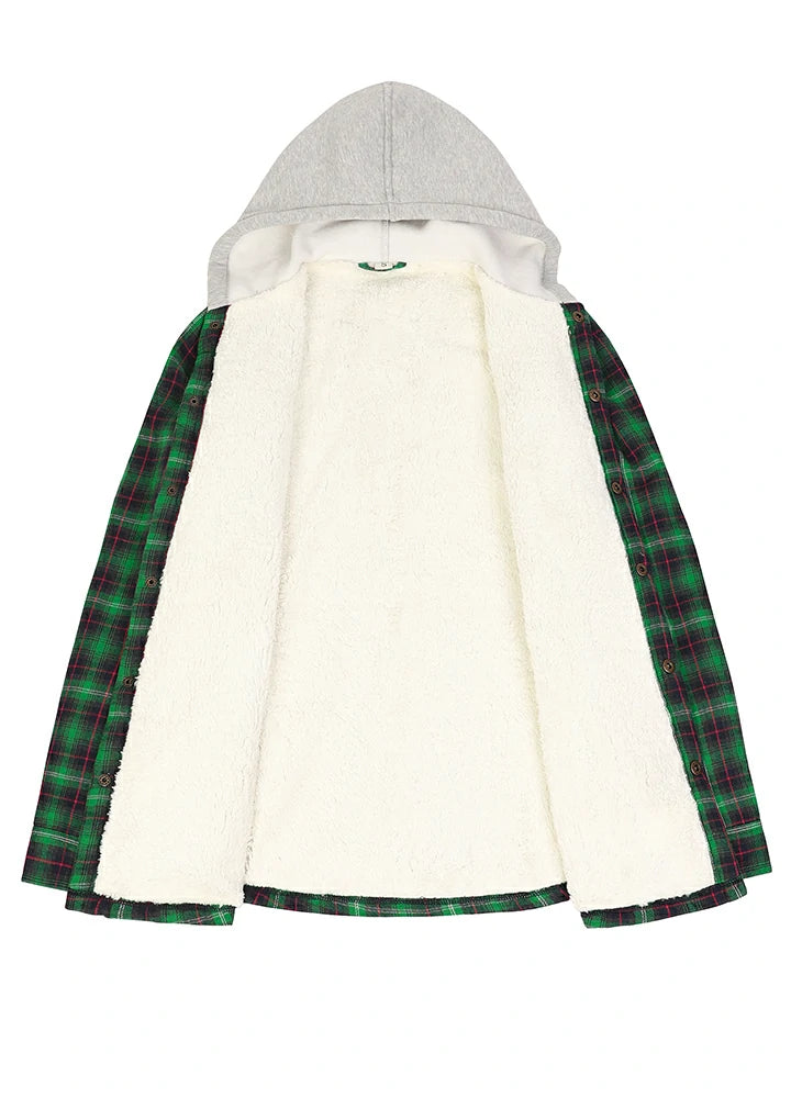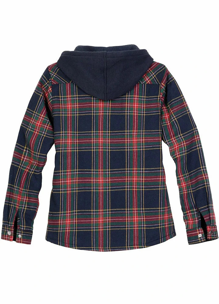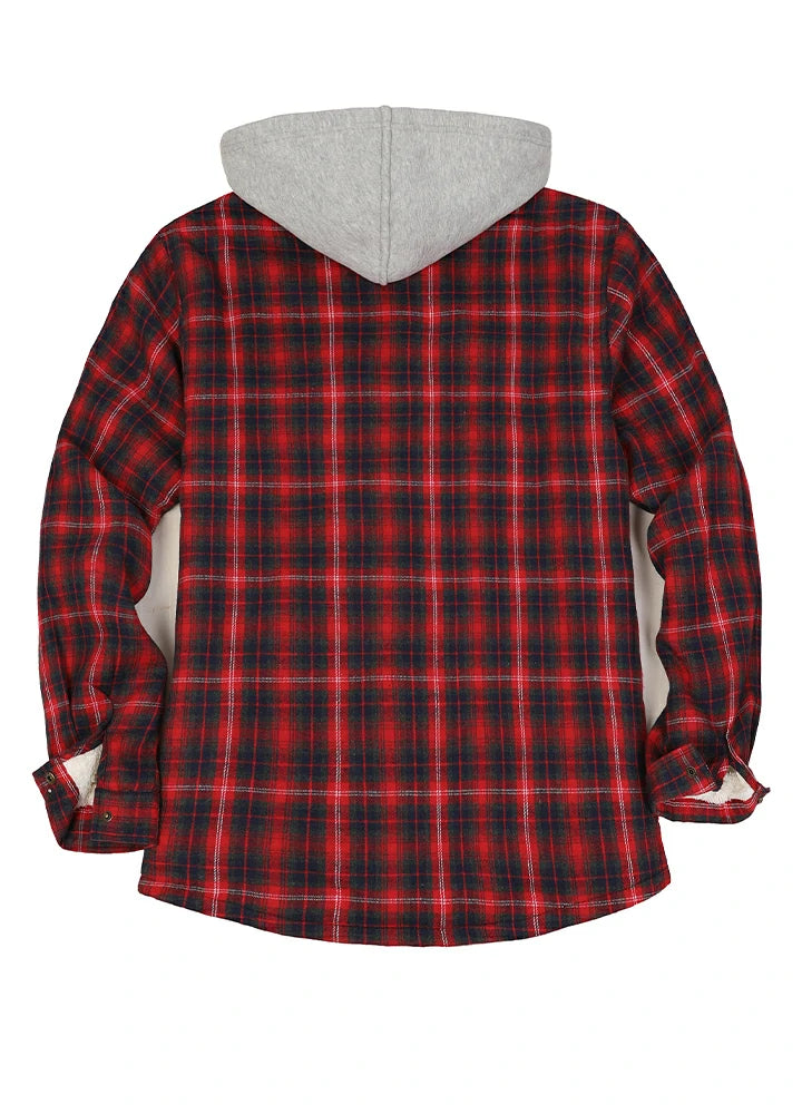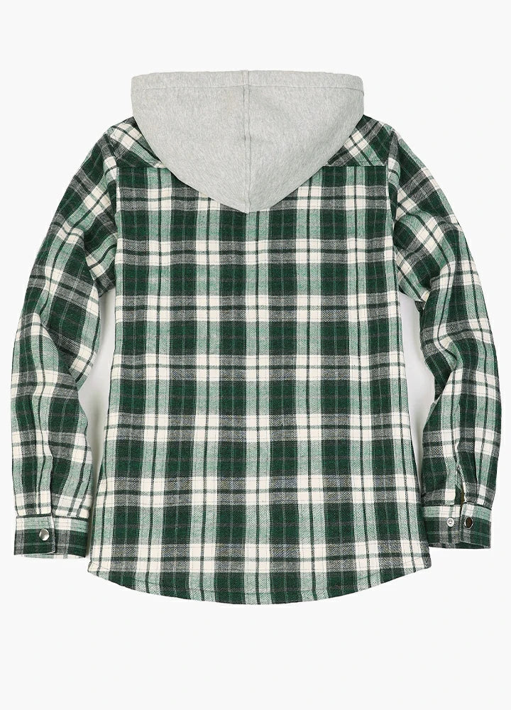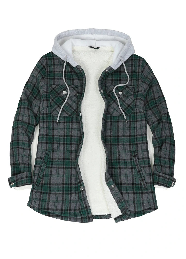 Women's Sherpa-Lined Snap Button Flannel Jacket with Fleece Hood