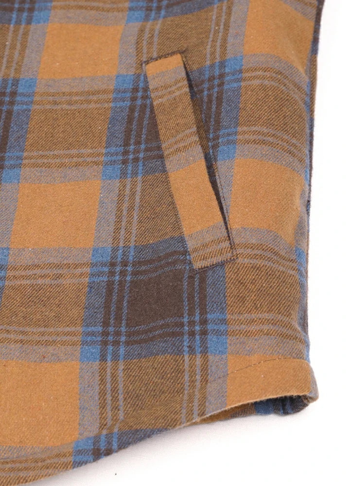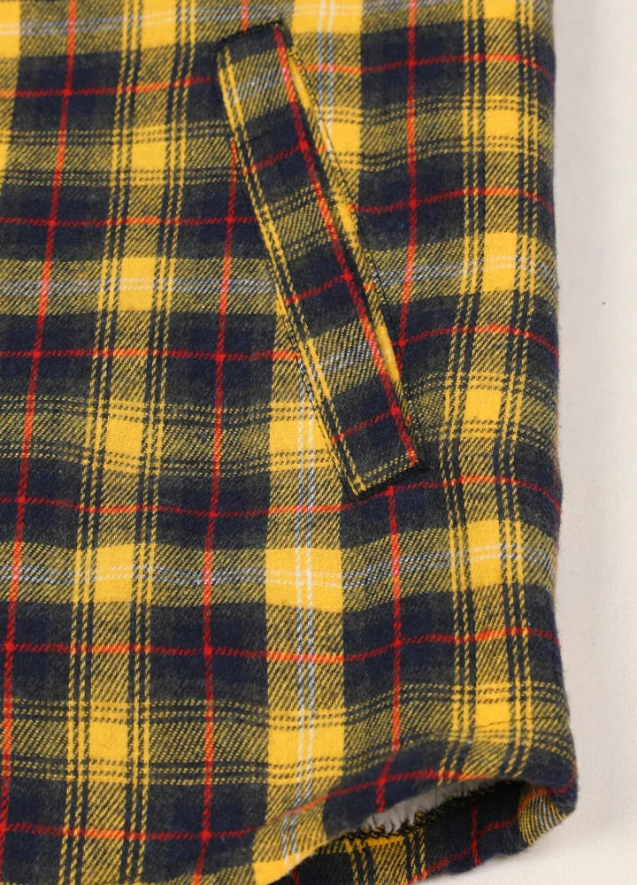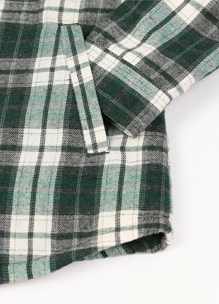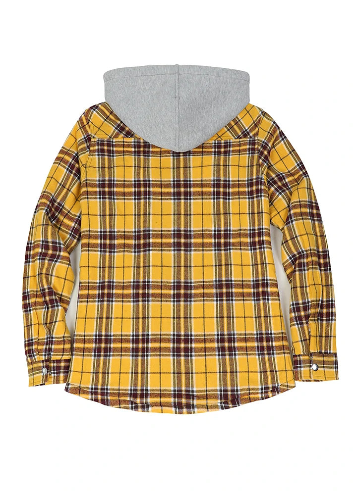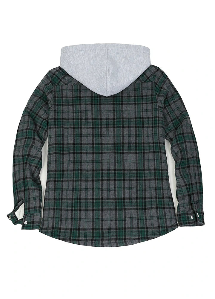 Brave the cold with this Sherpa-lined flannel jacket! Its snap-button front placket and hood keep you snug and warm, while two side pockets and two front flap chest pockets add convenience. Adjustable cuffs with two buttons add extra coverage.