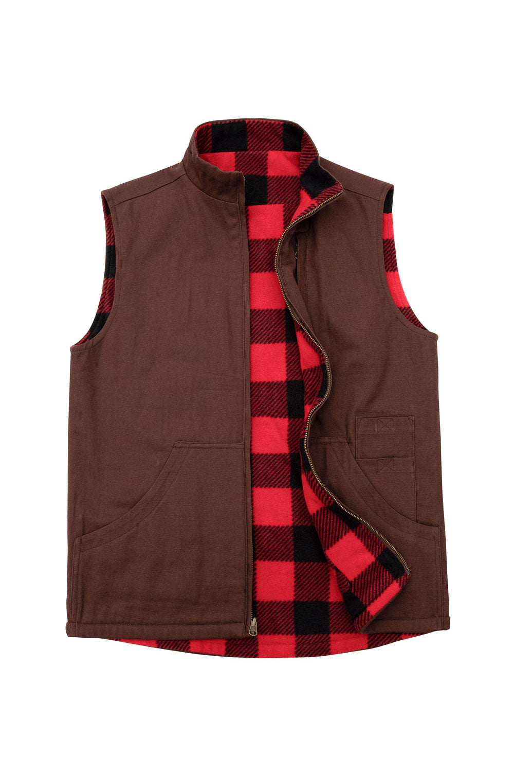Men's Reversible Vest Plaid Fleece Lined Outdoor Vests