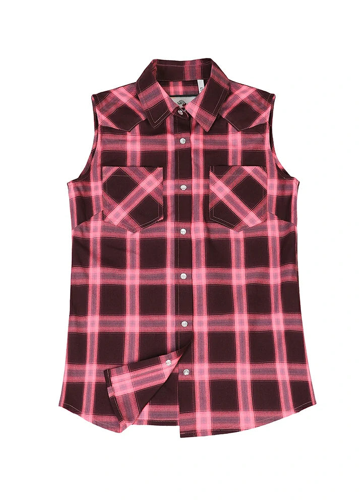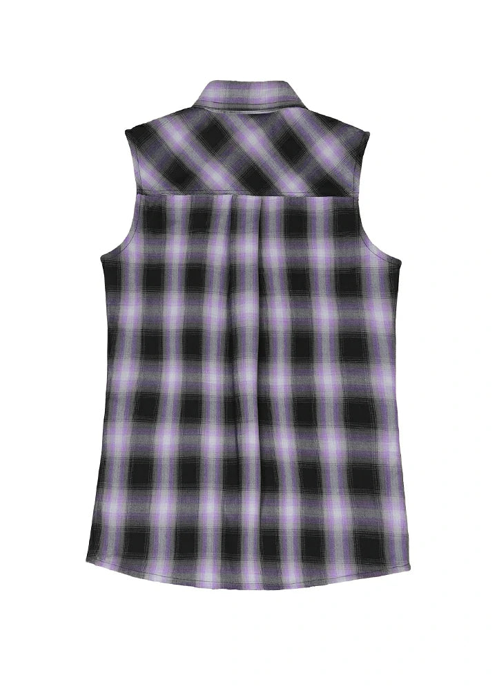 Women's Western Pearl Snap Plaid Vest - Purple Black / S is backordered and will ship as soon as it is back in stock.