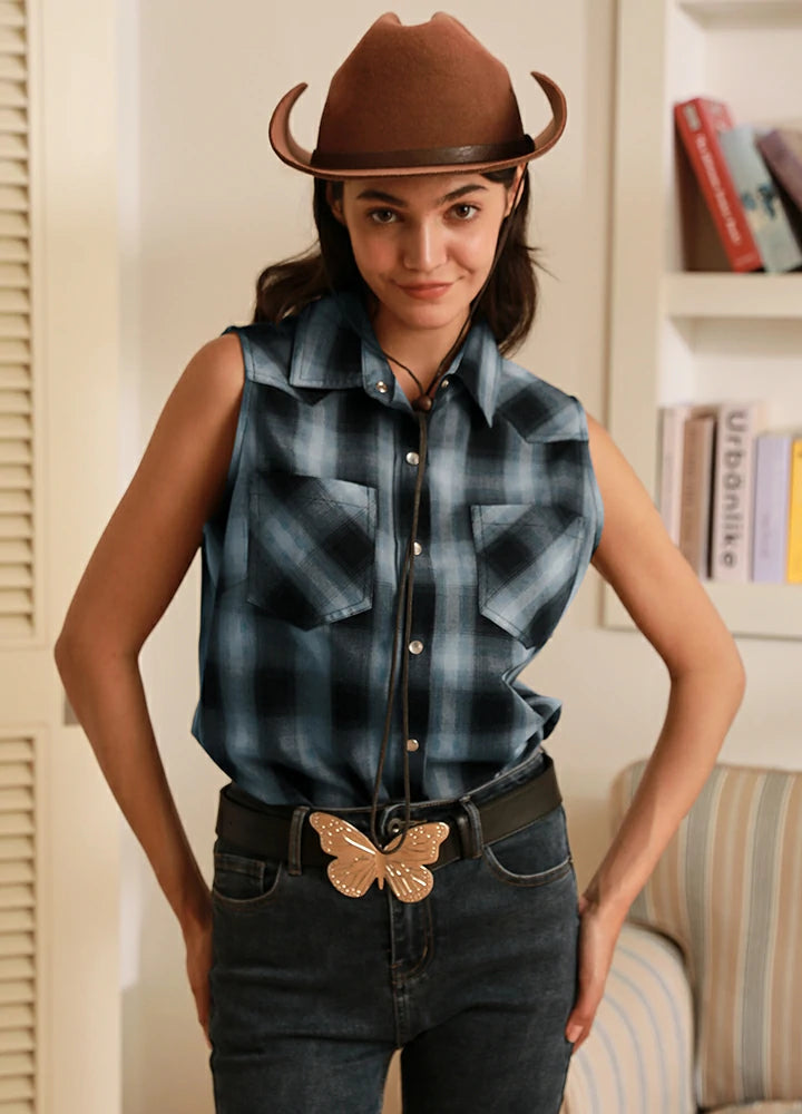 Embrace the perfect blend of practicality and elegance with the unique charm of Western women's fashion. Leveraging the strengths of shirt construction, the unique features of shirts and vests are seamlessly combined to make you stand out. The white pearl buttons and I-shaped pleats enhance the vest's elegance and functional details. Merging timeless Western style with modern elements, this piece ensures your fashion.