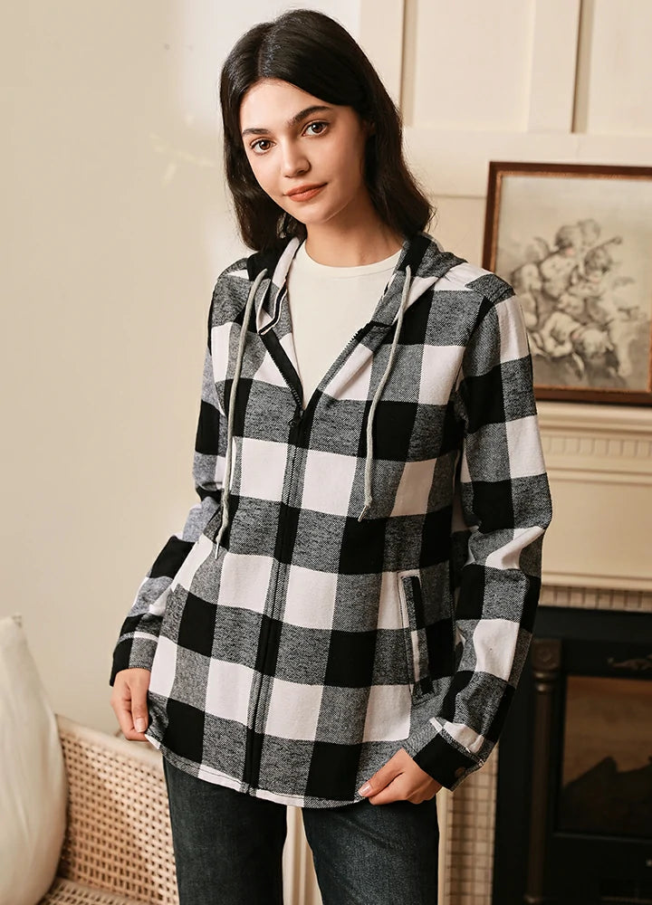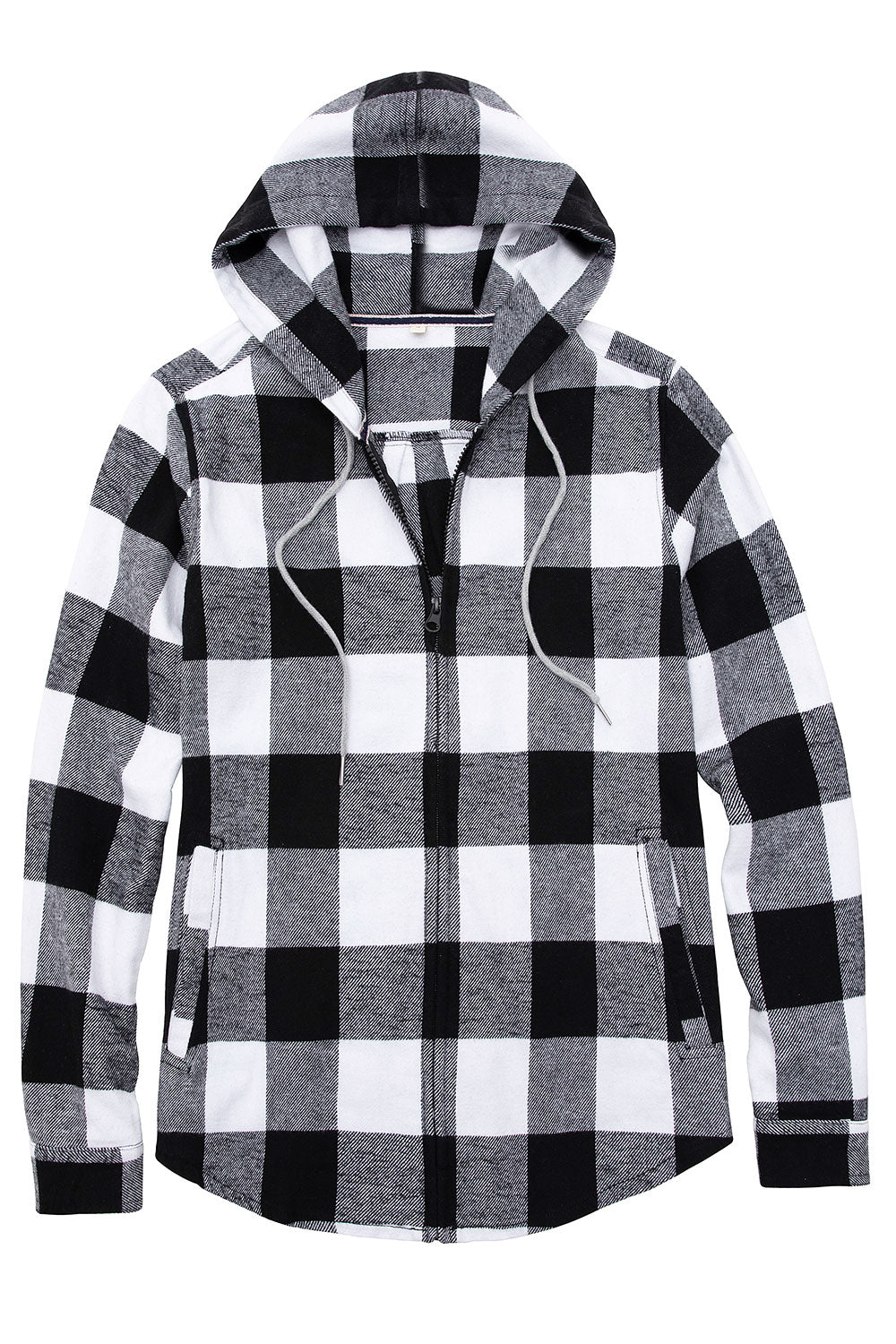 Women's Flannel Hoodie Heavyweight Chamois Shirt,100% Cotton - Black White / S is backordered and will ship as soon as it is back in stock.