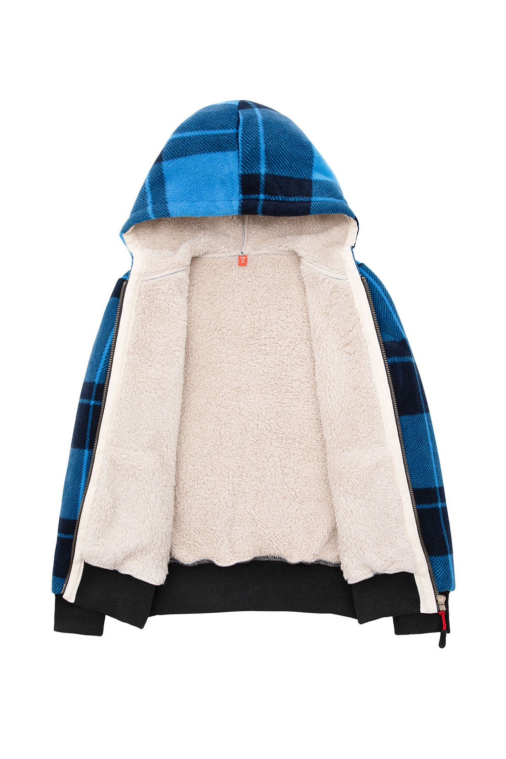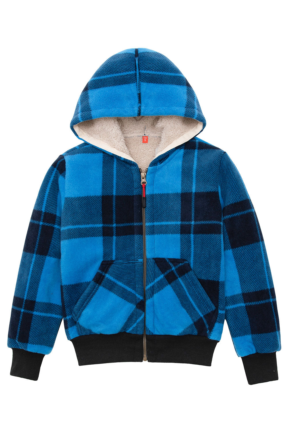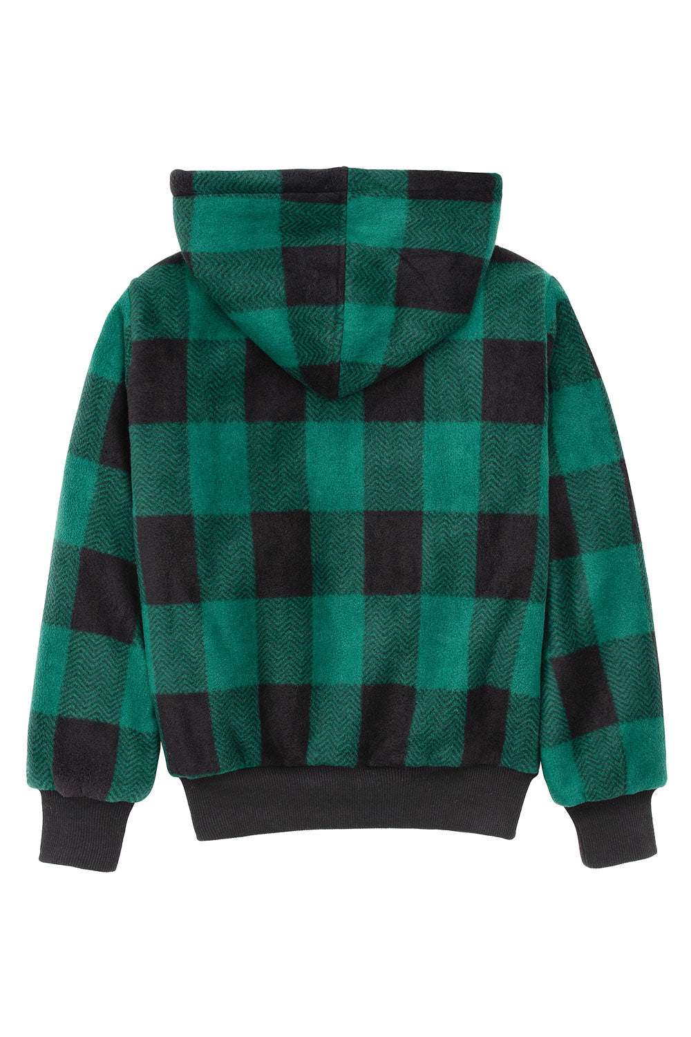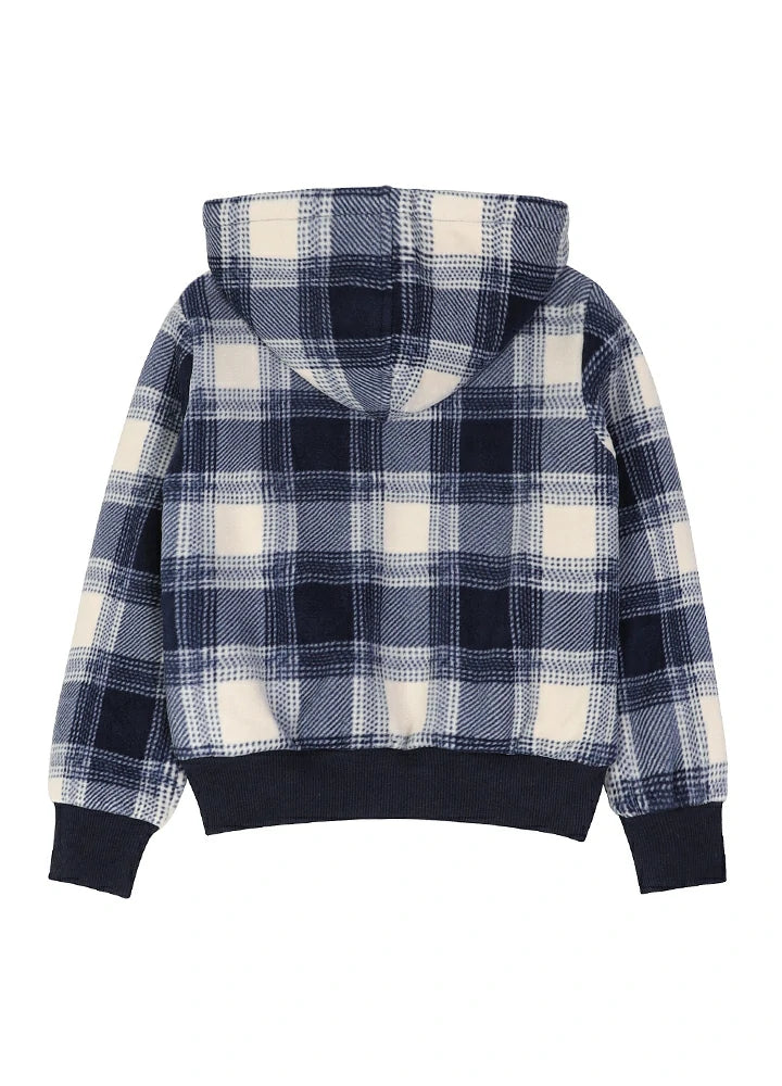 Kinder-Sweatshirtjacke mit durchgehendem Reißverschluss und Kapuze und Karomuster