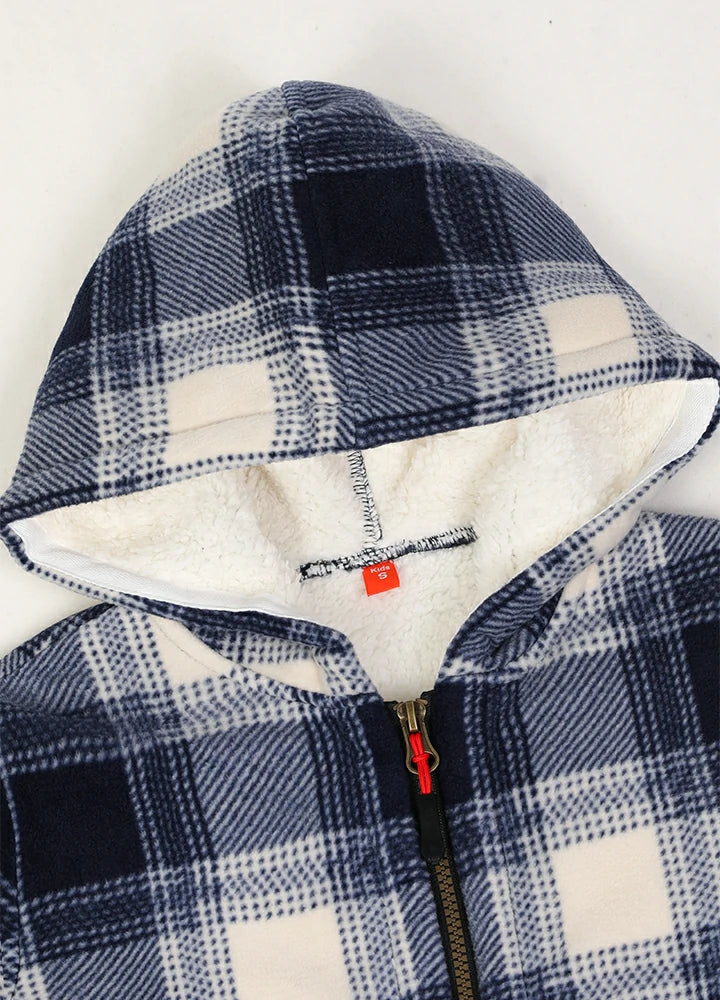 Kinder-Sweatshirtjacke mit durchgehendem Reißverschluss und Kapuze und Karomuster - Mitternachtsdämmerung / S ist auf Lager und wird versandt, sobald es wieder verfügbar ist