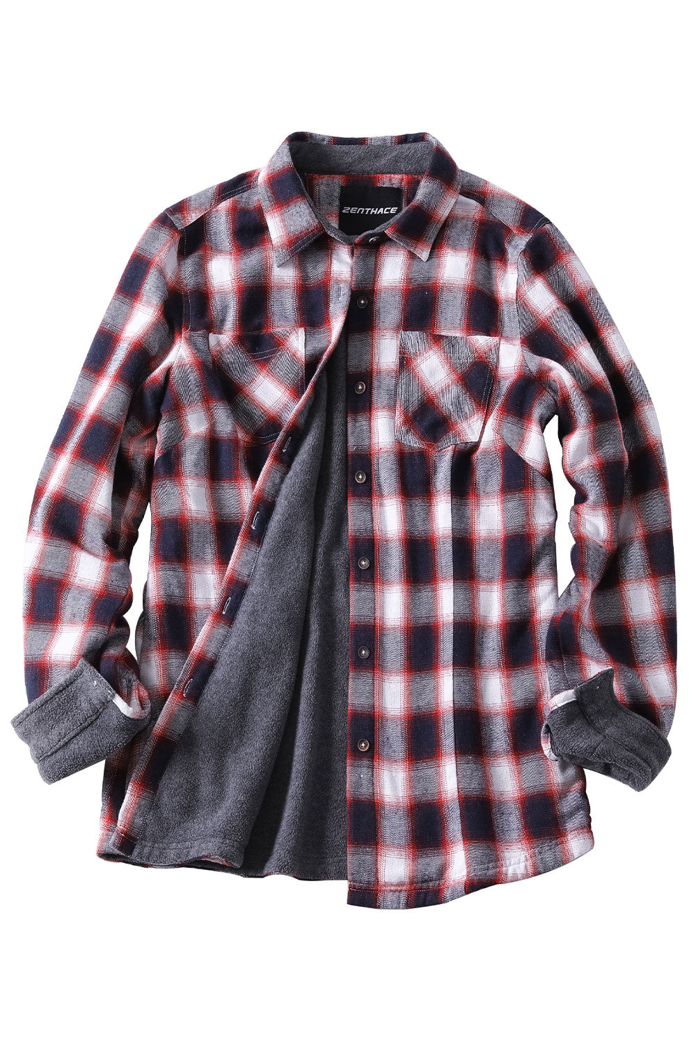 Bleiben Sie warm und stilvoll mit dieser karierten Flanell-Hemdjacke mit Fleecefutter. Sie hält die Kälte ab, speichert die Wärme und verleiht Ihrer Garderobe ein gemütliches Winter-Update. Der weiche, warme Baumwollflanell macht sie perfekt für Freizeit und Urlaub.