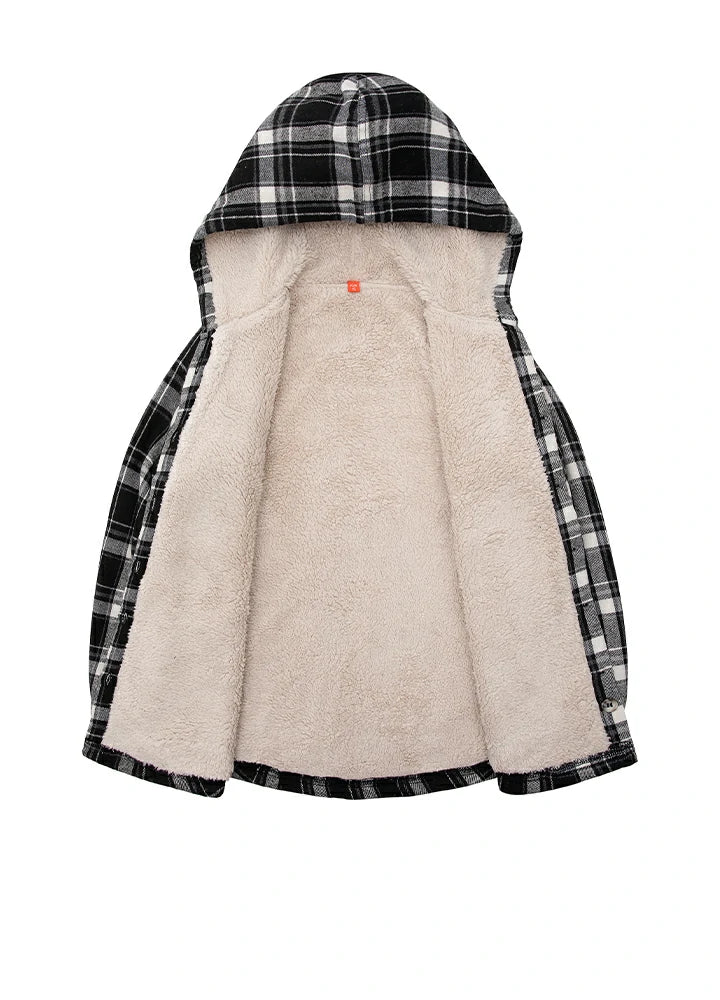 Girls Matching Family Black White Hooded Plaid Flannel Shirt Jacket