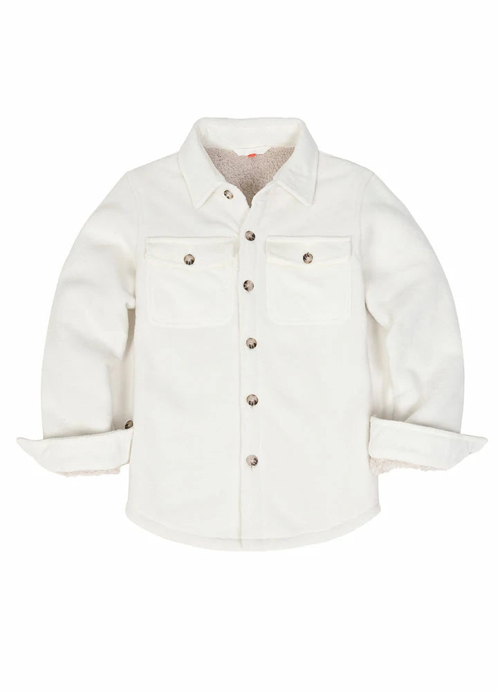 Front view of girls white fleece flannel shirt jacket