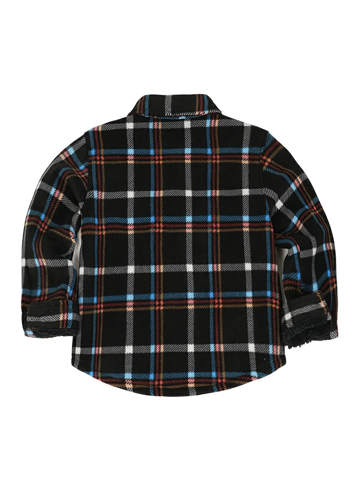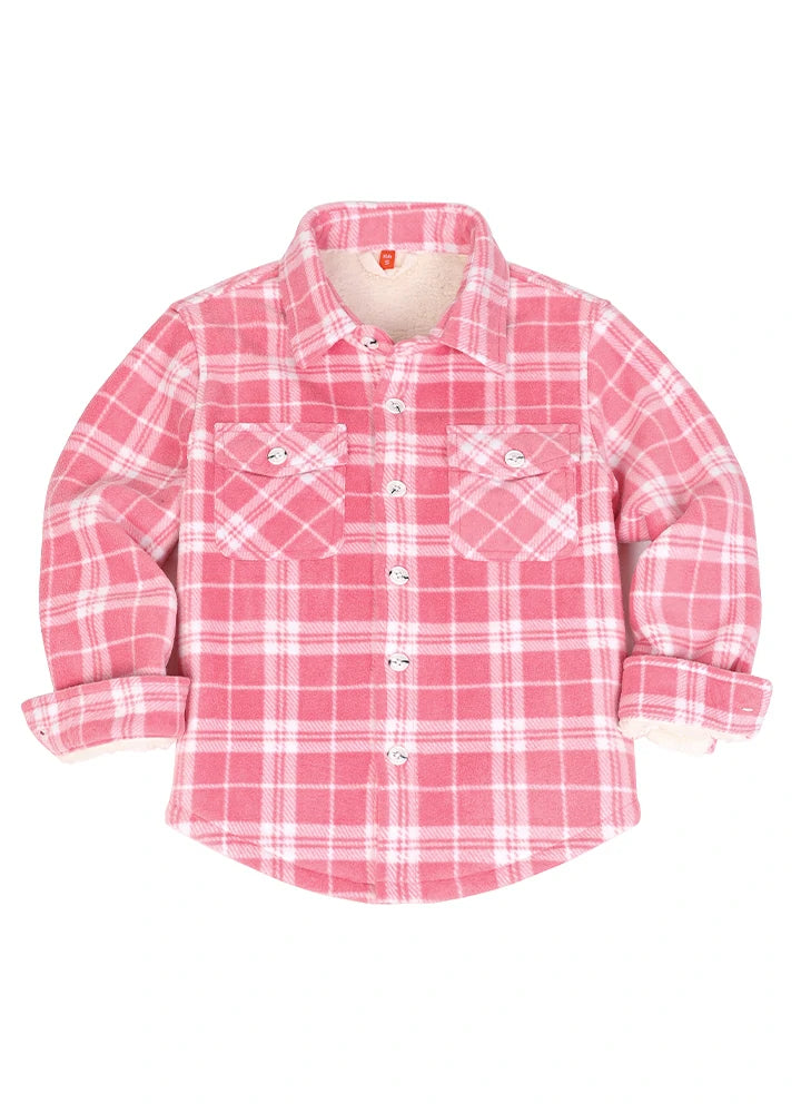 Girls Sherpa Lined Buffalo Plaid Fleece Button Down Shirt Jacket-Kids