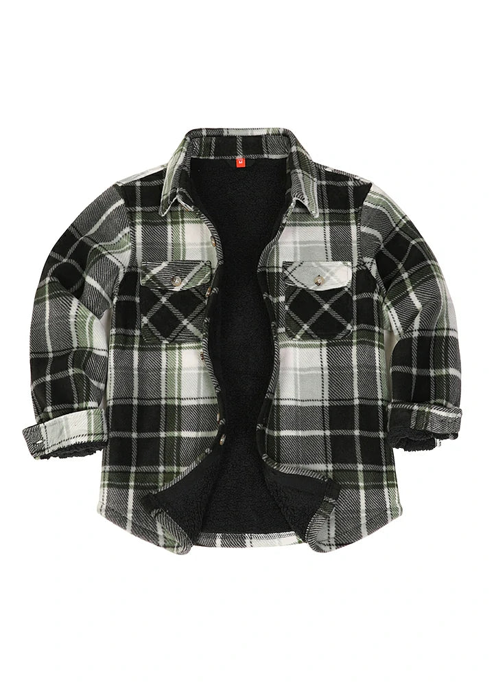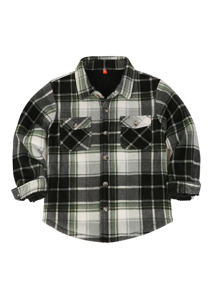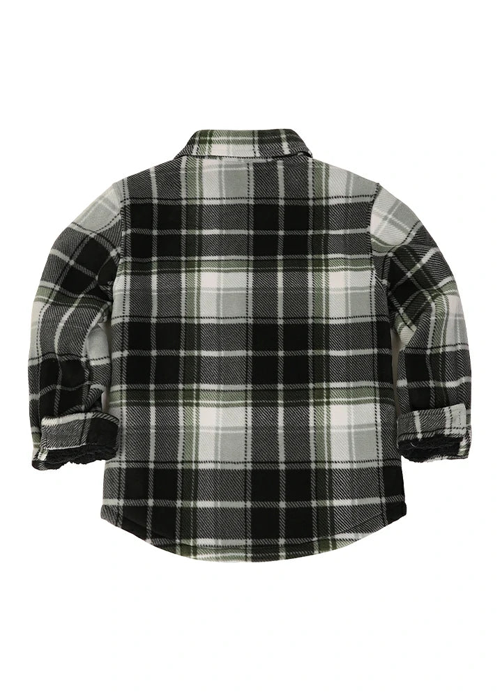 Keep your kids warm and unrestricted in this cozy Sherpa Fleece Shirt Jacket! It features a classic buffalo plaid pattern and can be buttoned up for extra warmth. The fabric is soft, comfortable, and gentle on the skin. Conveniently machine-washable for easy care. Capture memorable family pictures with this stylish and warm flannel shirt jacket!