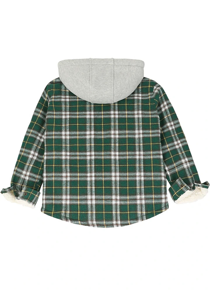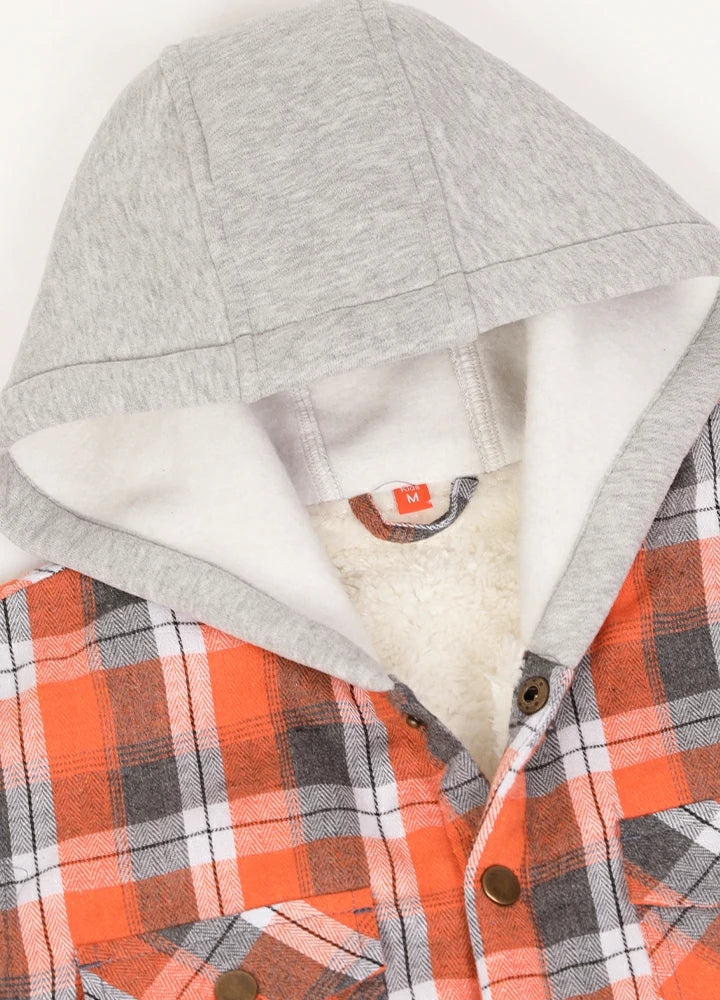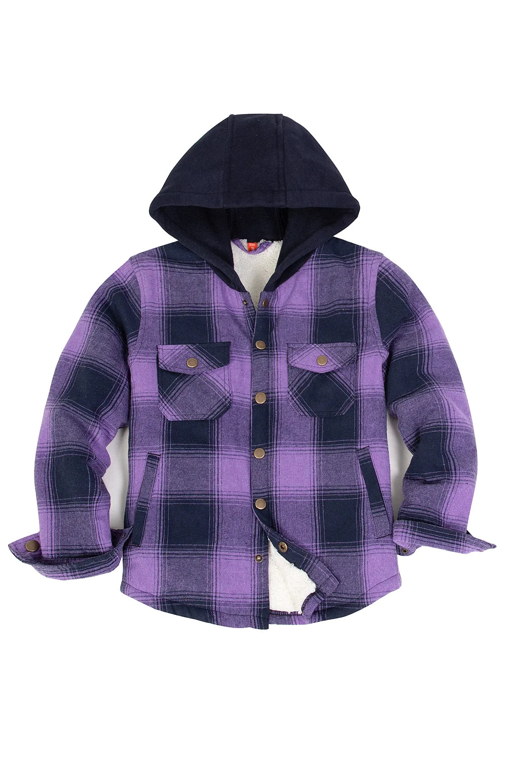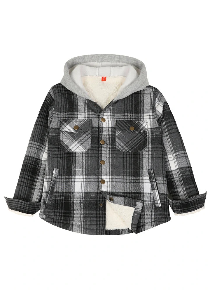 Kids Boys and Girls Fleece-Lined Snap Flannel Shirt,Hooded Plaid Jacket