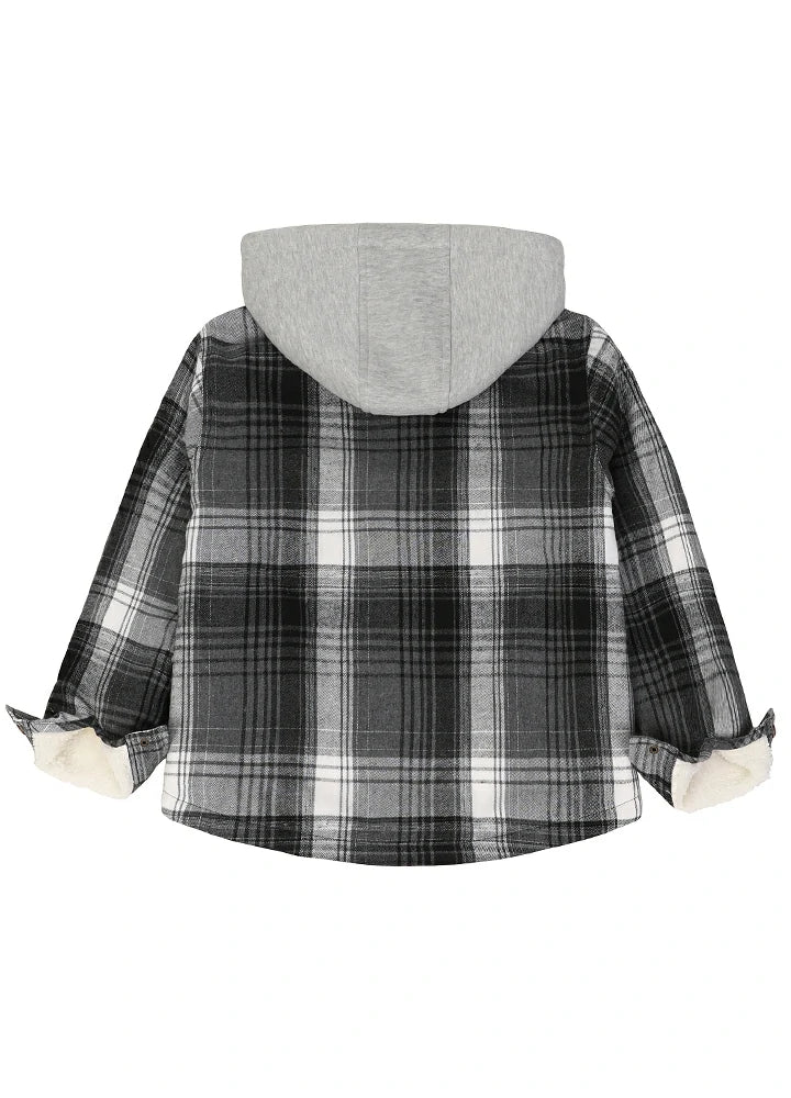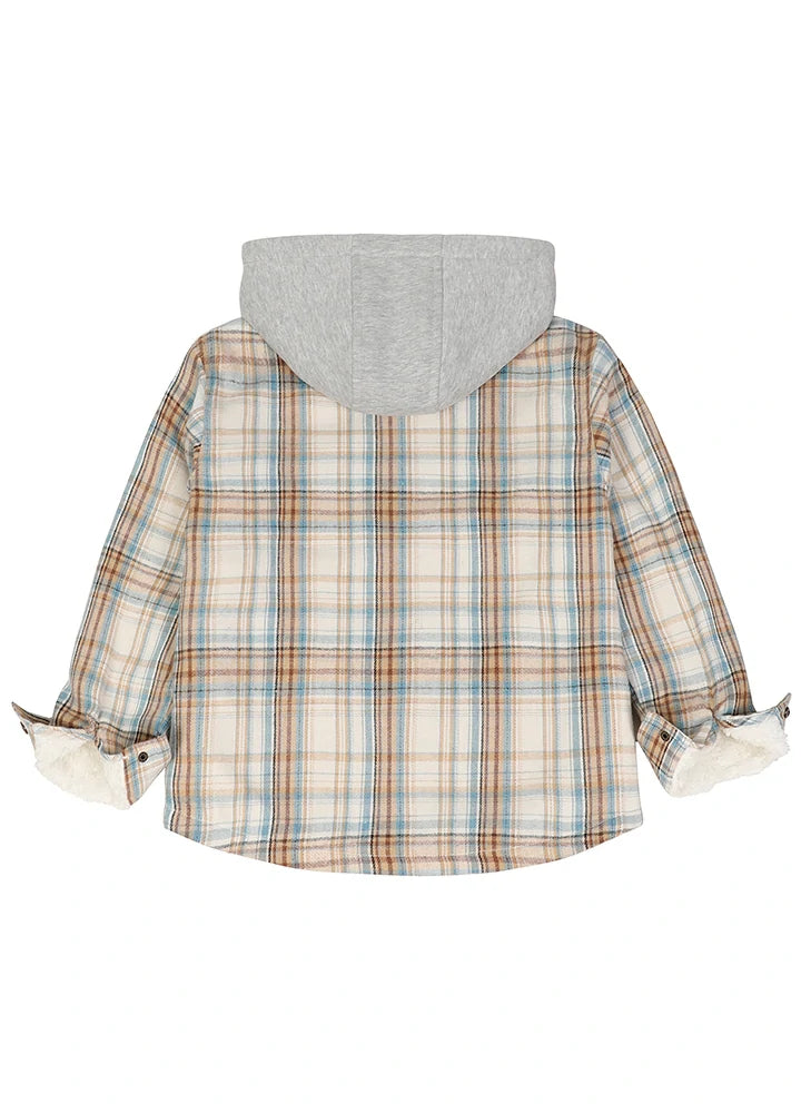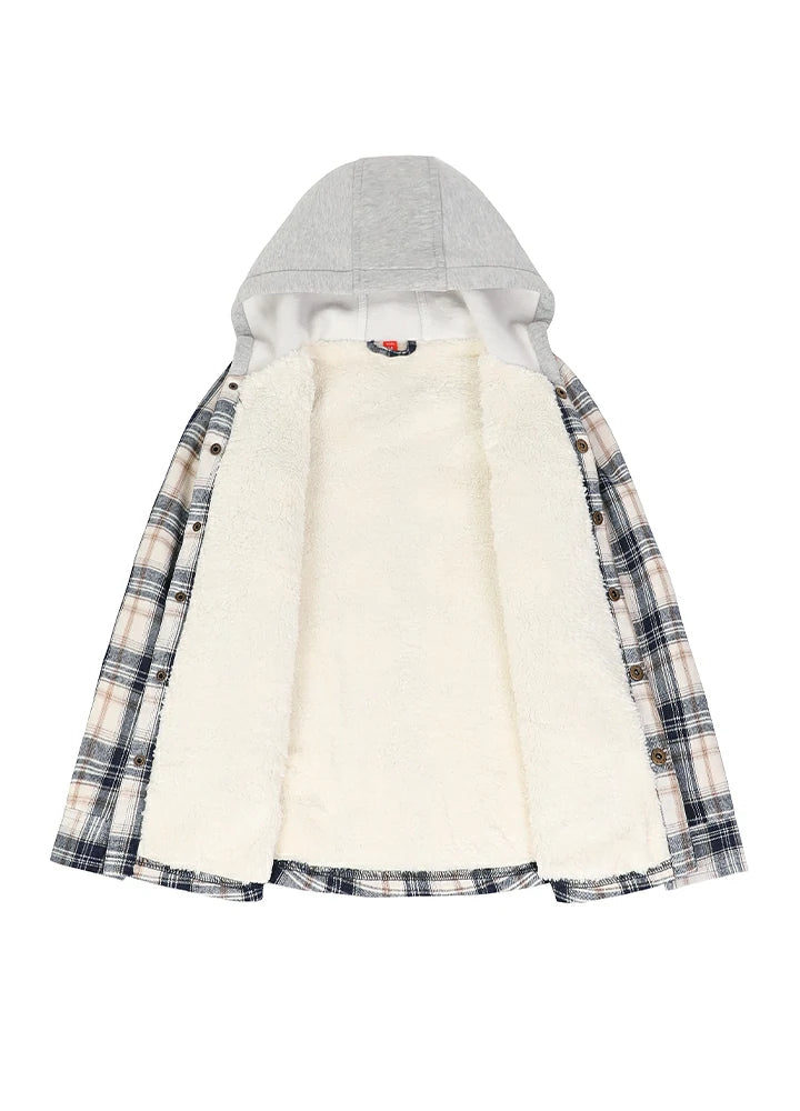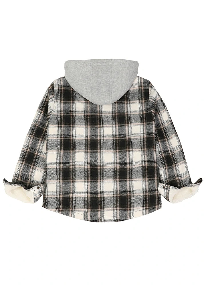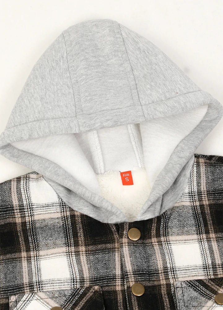 Kids Boys and Girls Fleece-Lined Snap Flannel Shirt,Hooded Plaid Jacket