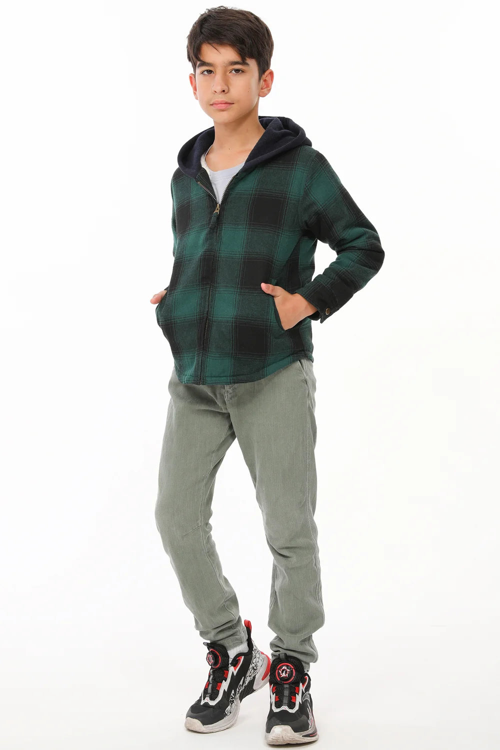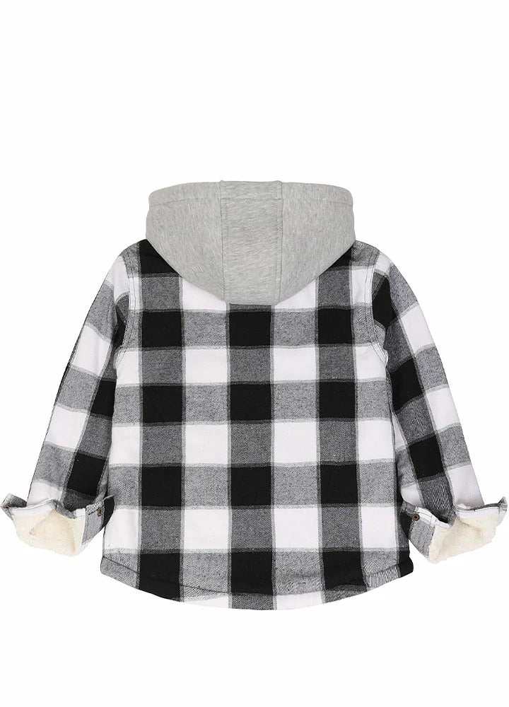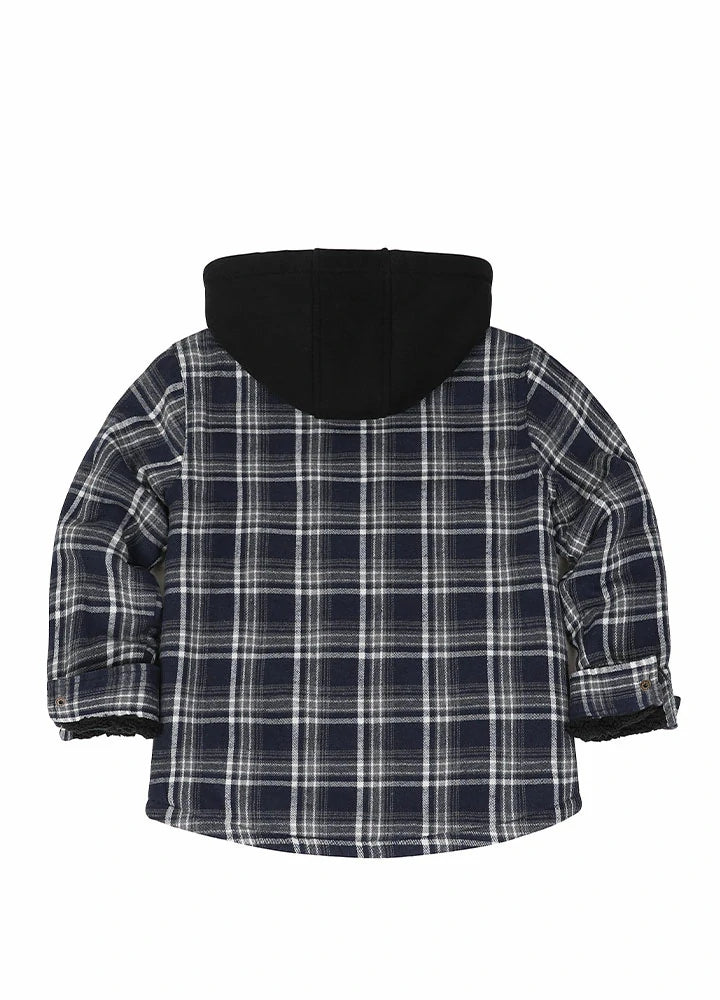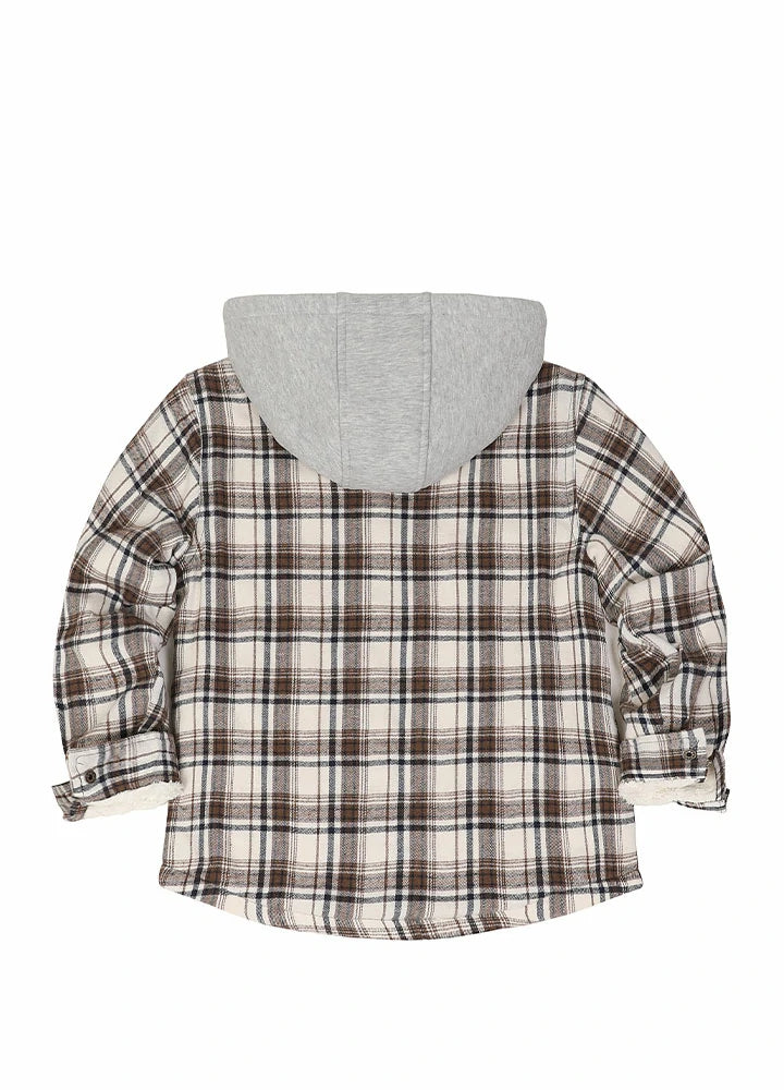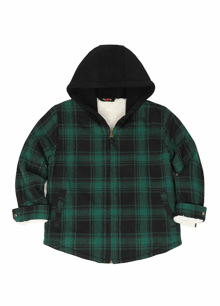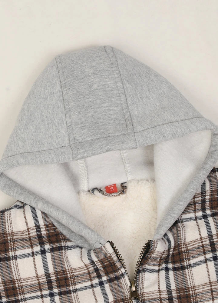 Kids Sherpa-Lined Zip Up Flannel Shirt,Hooded Plaid