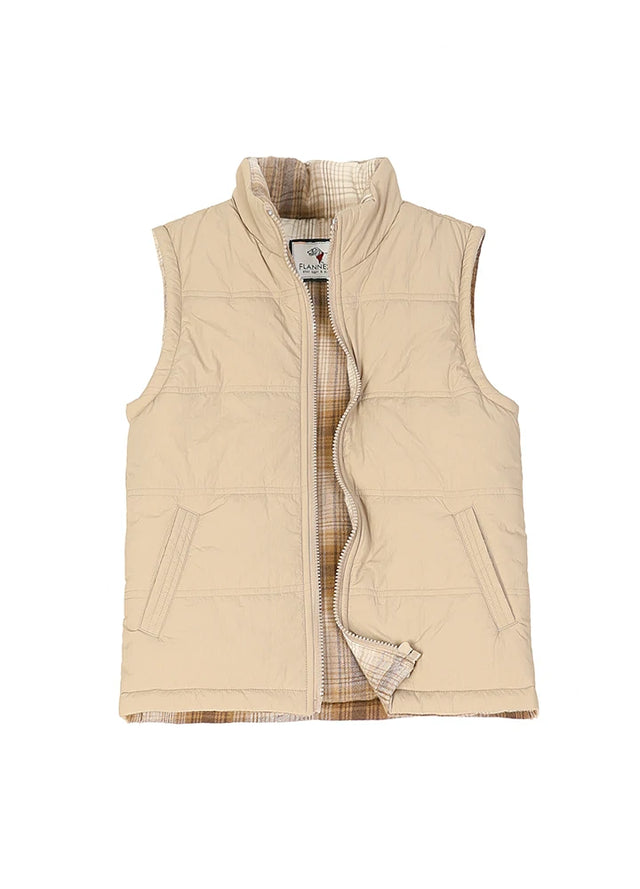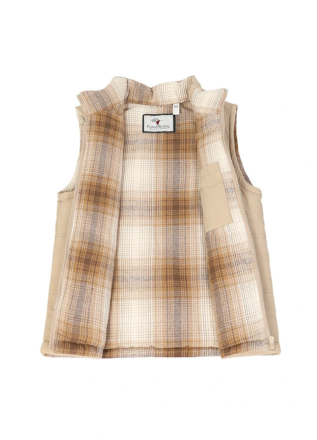 Kid's Lightweight Flannel Lined Puffer Vest - Khaki / S is backordered and will ship as soon as it is back in stock.