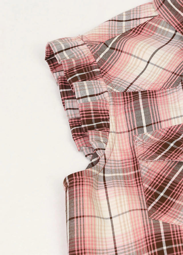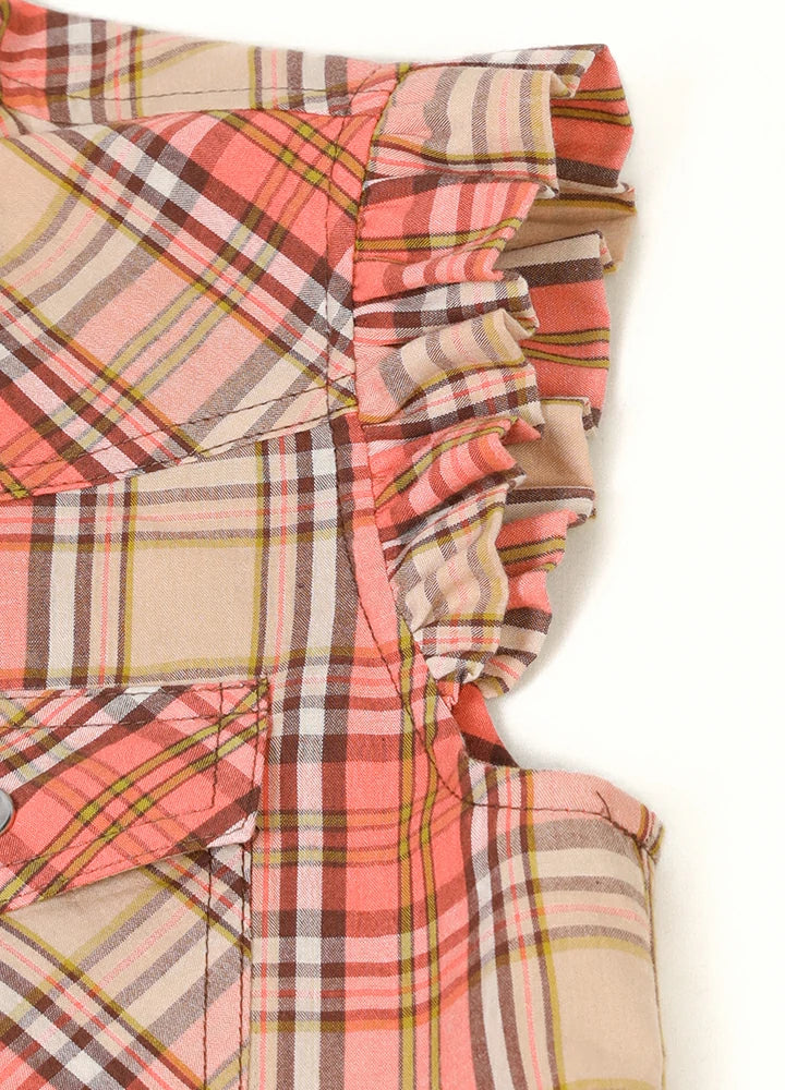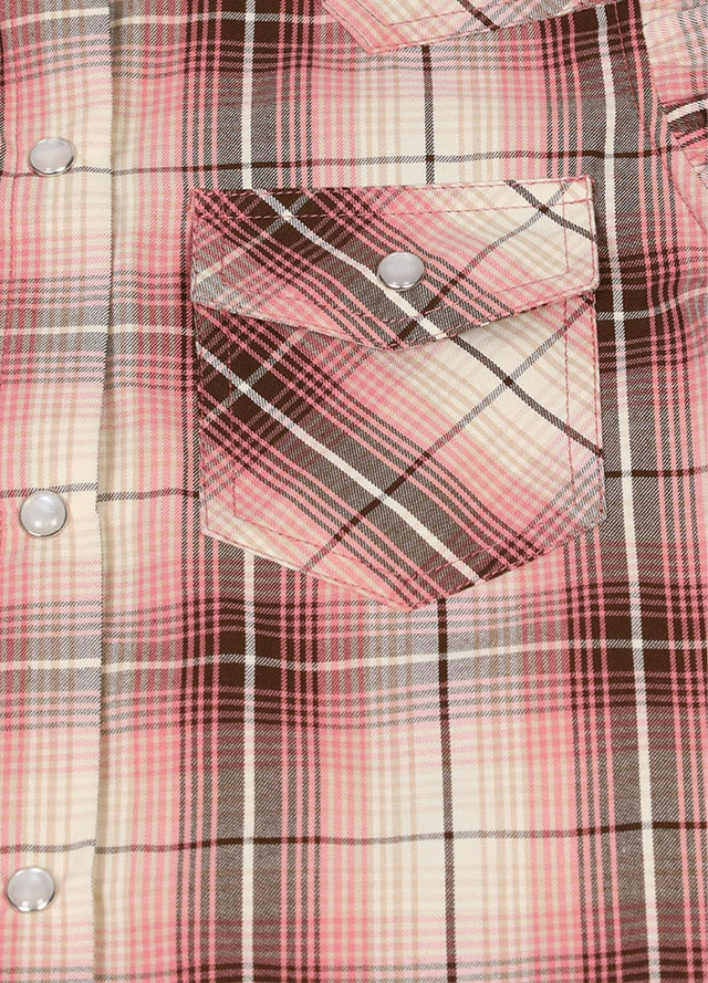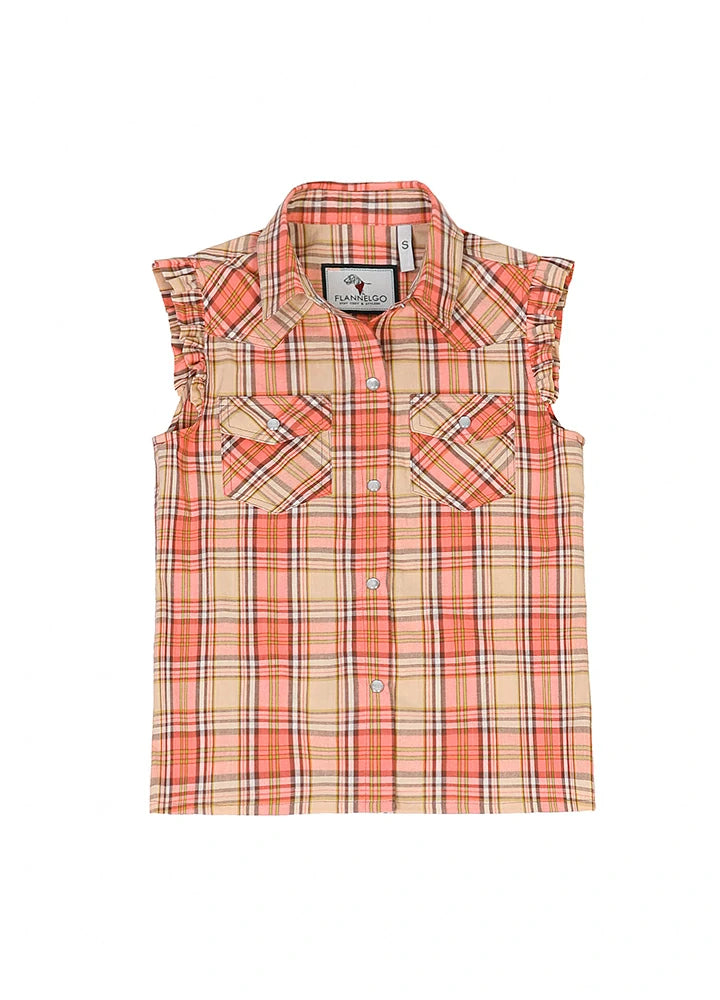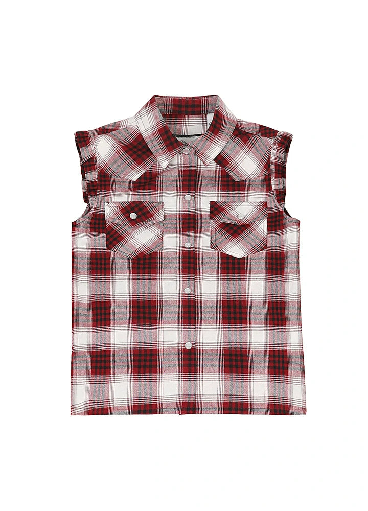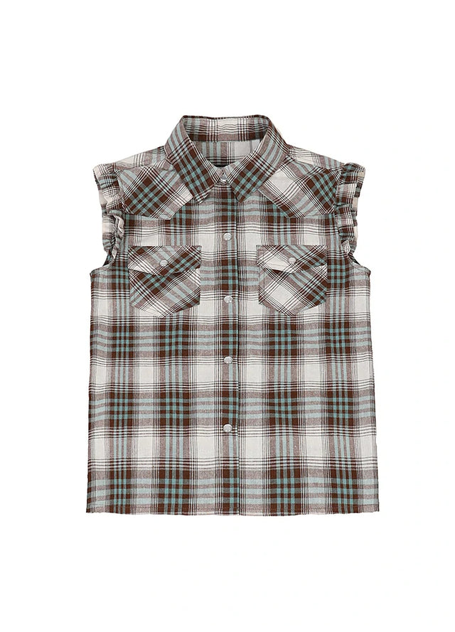 Make a statement with this kids' Western-style plaid tank top made from soft, breathable cotton. Featuring a stylish sleeveless design with snap front closure, this tank top is perfect for everyday wear and has plenty of Western style. The classic Western pearl snap is beautiful and easy to close. The cuffs feature a unique falbala design, and two front pockets provide convenience and style. Pre-washed for easy care.