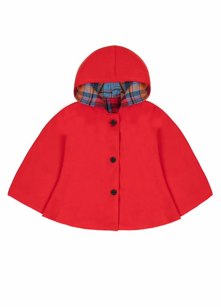 Kids Reversible Wool Blend Cape, Flannel Plaid - Red / S is backordered and will ship as soon as it is back in stock.