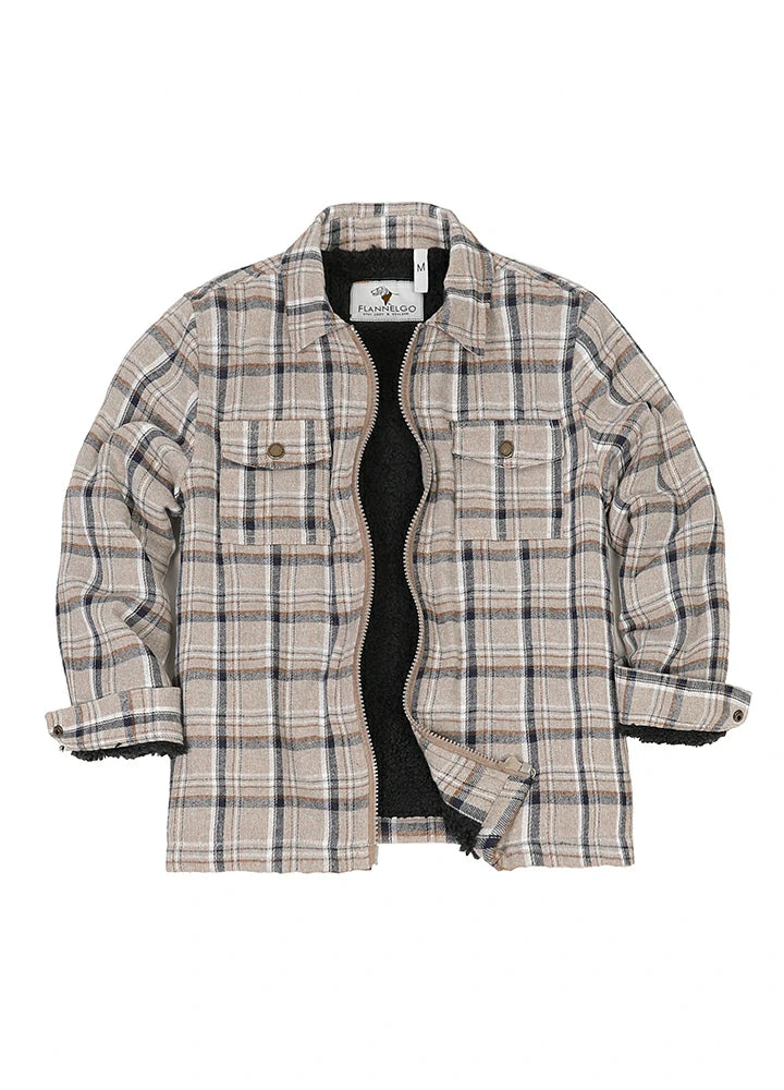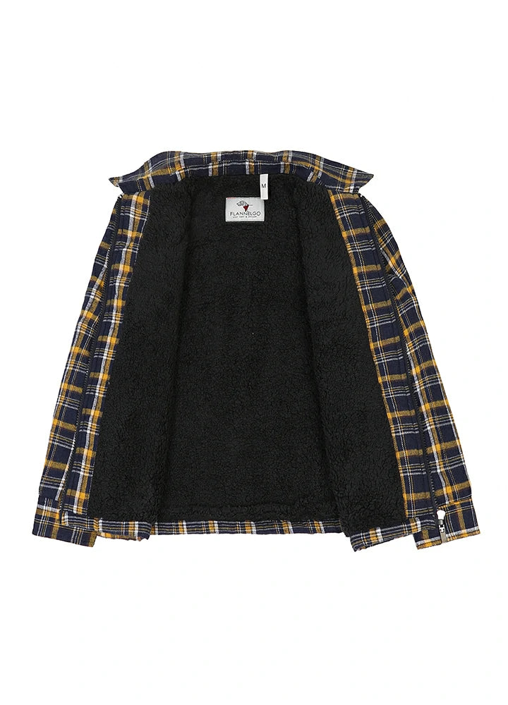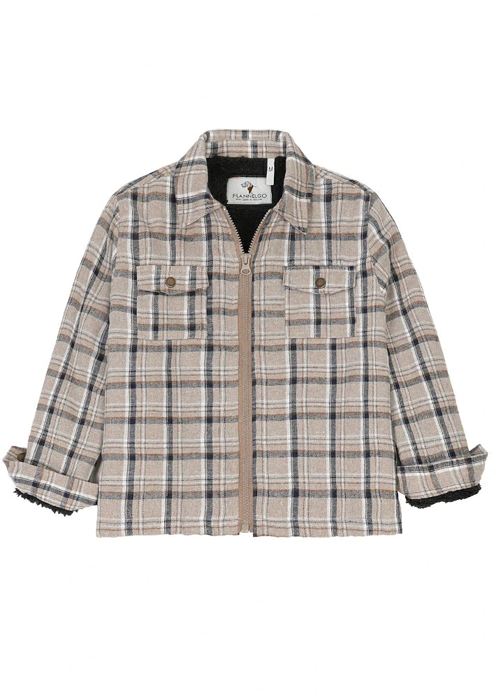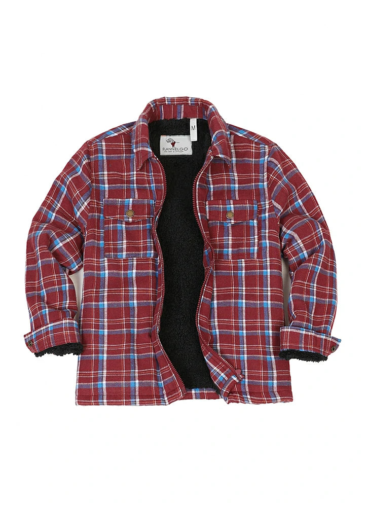 Kid's Sherpa Fleece Lined Zip Up Plaid Flannel Shirt Jacket