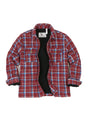 Front view of kid's red black sherpa fleece flannel shirt jacket