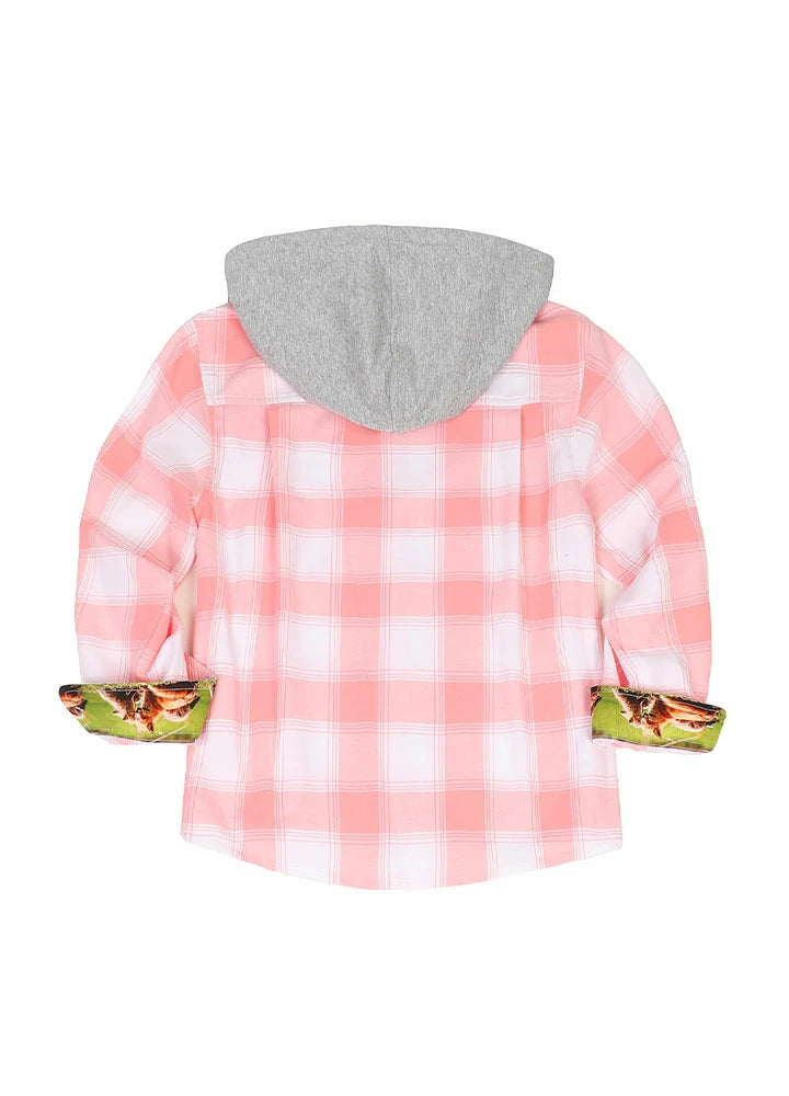Kid's Wildlife Adventure Single Layer Hooded Shirt - Sakura Pink / S is backordered and will ship as soon as it is back in stock.