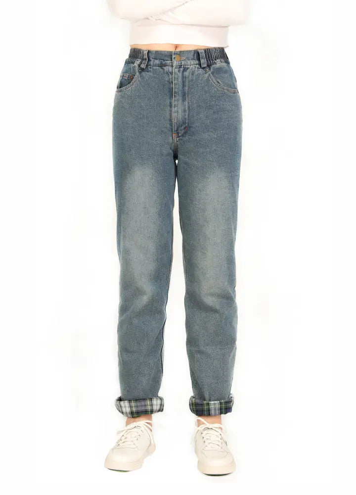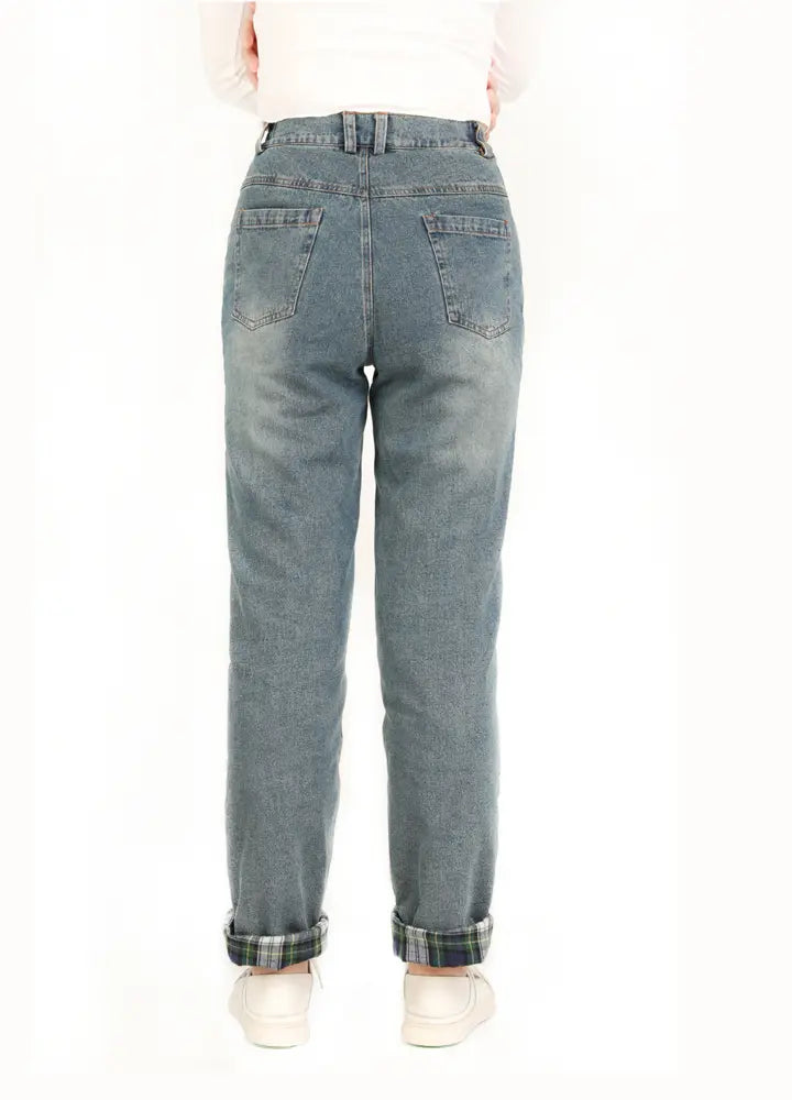 Experience the ultimate comfort with our Women's Flannel Lined Denim Pants. The brushed plaid flannel lining provides warmth, while the straight leg silhouette fits perfectly over your shoes. Want a bold look? Cuff up the legs to reveal the striking buffalo check flannel. Elevate your style with cotton comfort.