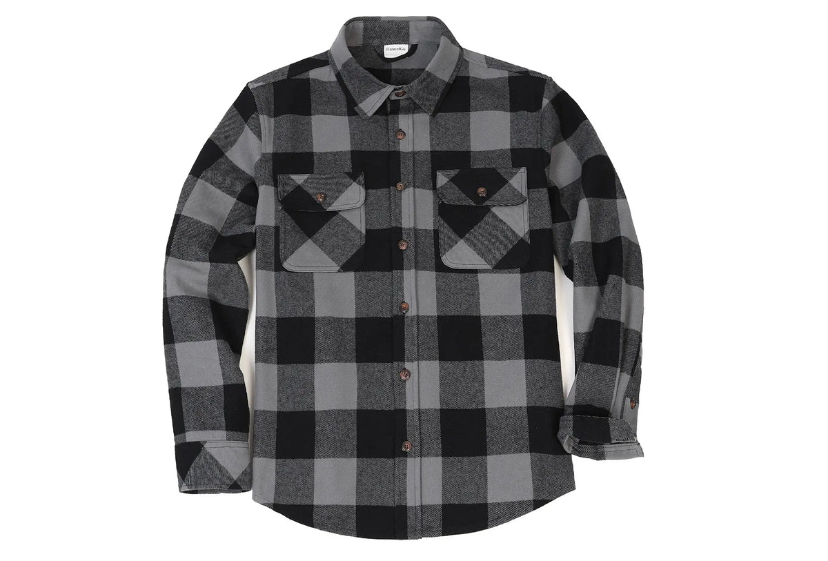 The Men's Stalwart Heavyweight Flannel Shirt is soft, stylish, and made from double-faced brushed cotton for ultimate comfort. Its loose fit allows easy movement and versatility, whether worn alone or layered. Featuring a button front closure and two chest pockets, it offers ample storage. Choose from a variety of color combinations and enjoy consistent comfort and durability. FlannelGo has you covered.