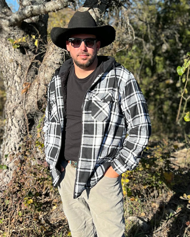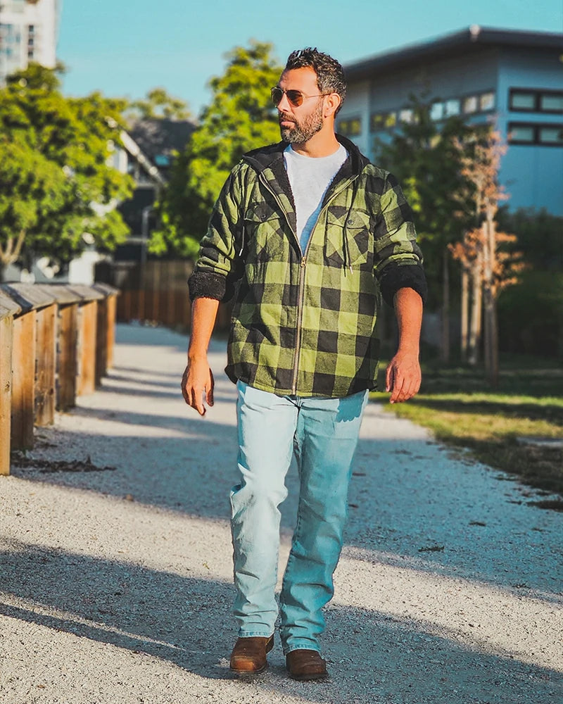 Men's Sherpa Lined Flannel Shirt Jacket with Hood,Plaid Shirt-Jac