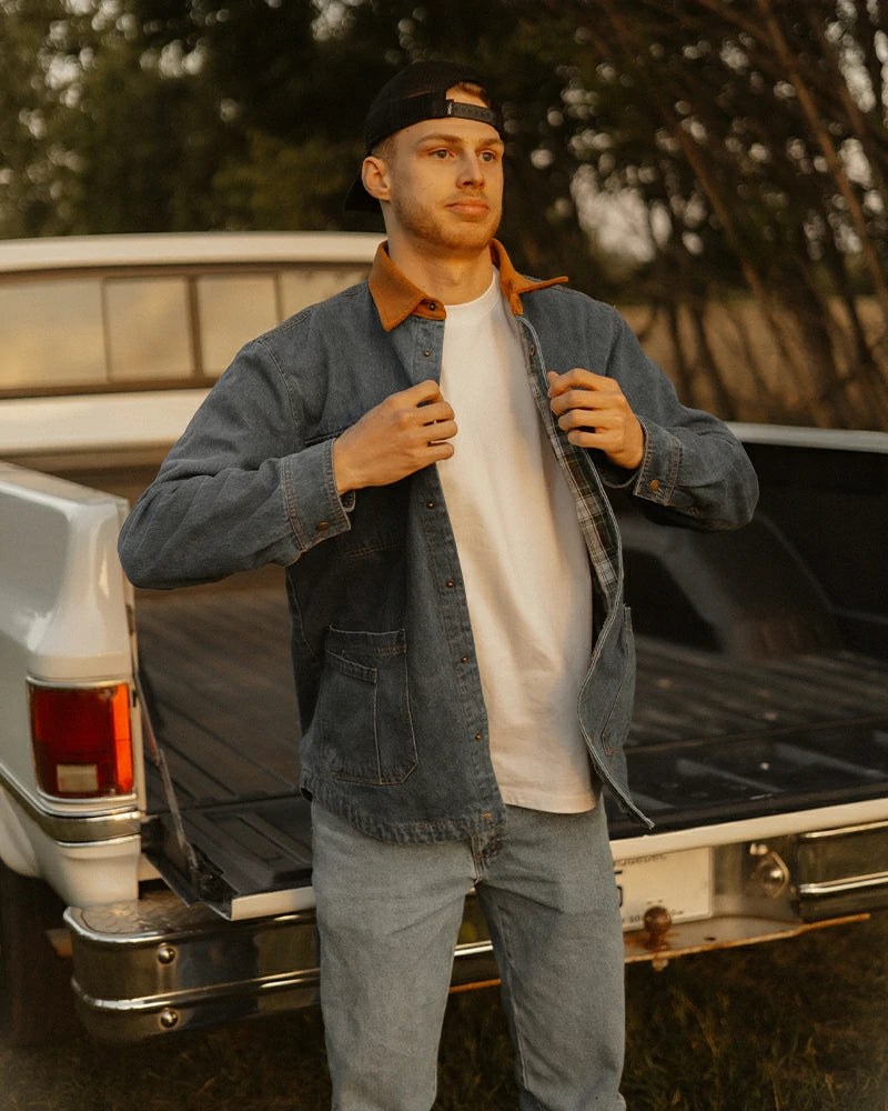 Men's Flannel Lined Utility Denim Shacket Workwear Inspired, 11.2 oz
