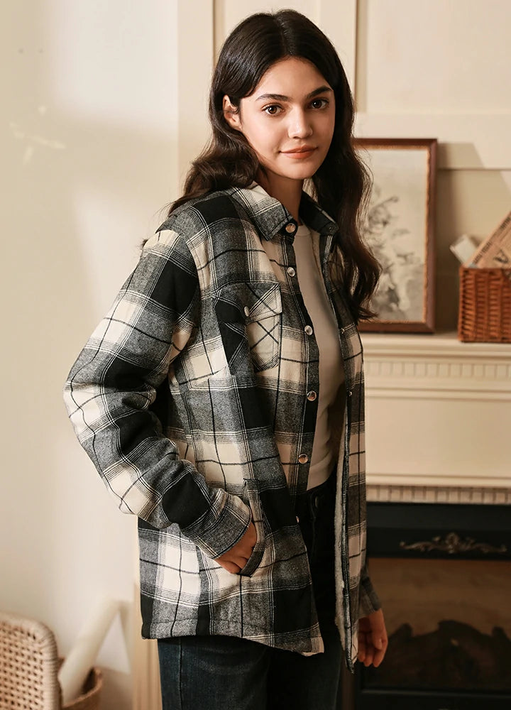 Women's Matching Family Black White Snap Up Flannel Shacket