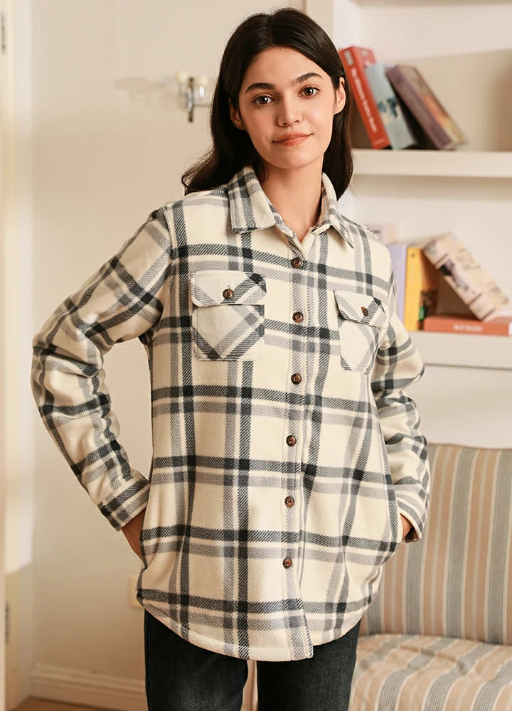 *Style: Womens Plaid Fleece Shirt Jacket/Shacket