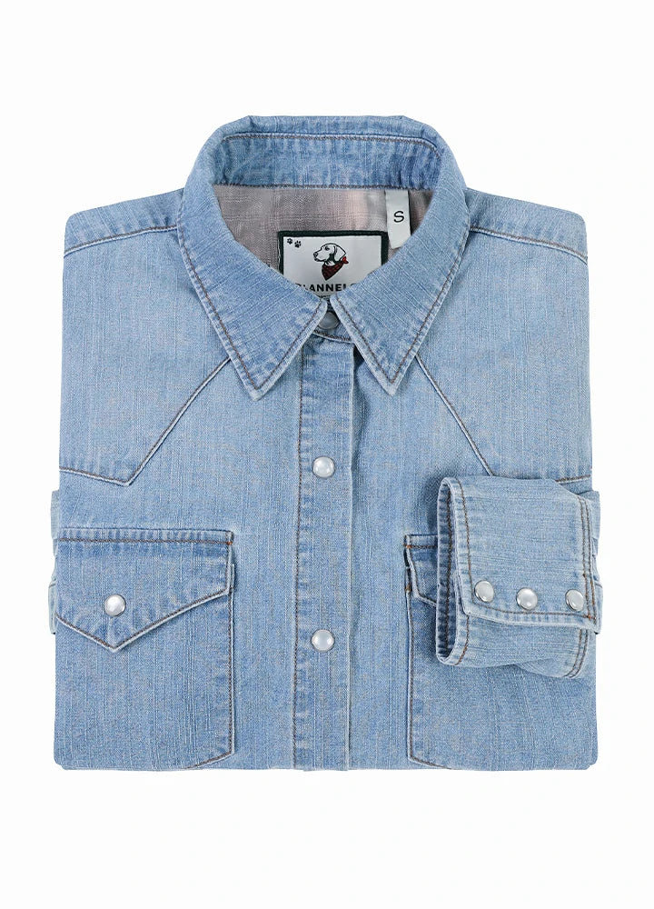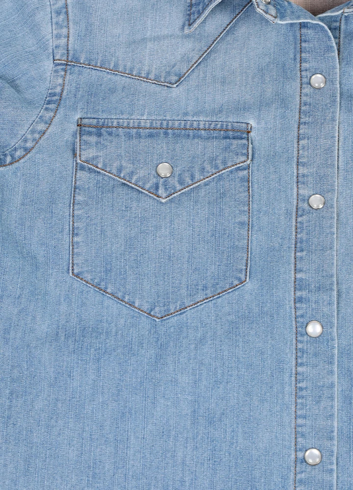 Women's Retro Pearl Snap Denim Western Shirt