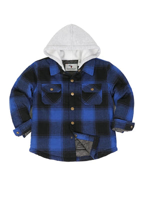Kids Boys and Girls Quilted Lined Hooded Flannel Shirt Jacket,Snap Button